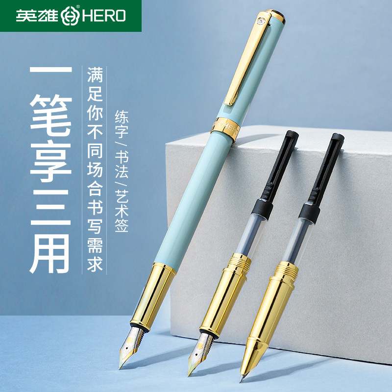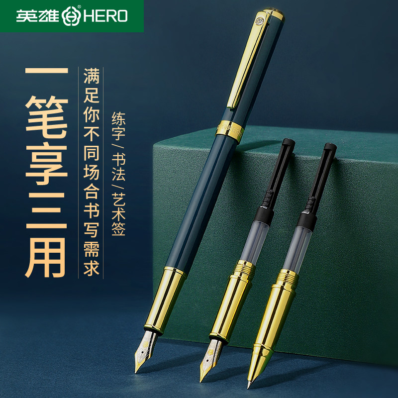 英雄牌钢笔三笔头套装美工弯尖细尖练字男士高档官方旗舰女生国货老字号签名三四年级小学生专用礼物送礼定制