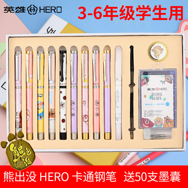 英雄牌钢笔熊出没卡通小学生三四年级练字墨囊可擦替换学生专用儿童初学者男女孩正姿可擦刚笔官方旗舰店正品