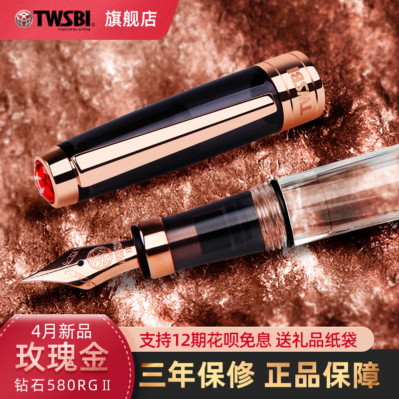 台湾twsbi三文堂580黑色玫瑰金钢笔女生专用复古练字笔透明刚笔学生用书法笔男士商务中国风礼物送礼