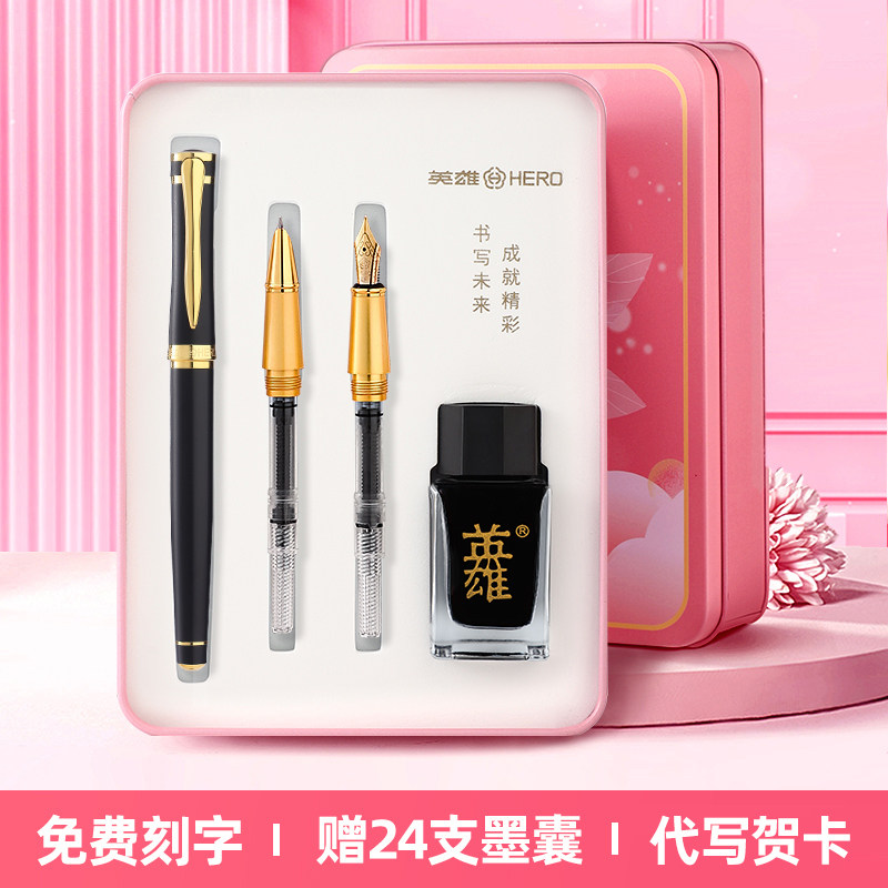 英雄钢笔官方旗舰礼盒成人商务办公送礼墨水套装男士女士高档复古精致专用练字学生礼物生日礼品老师定制刻字