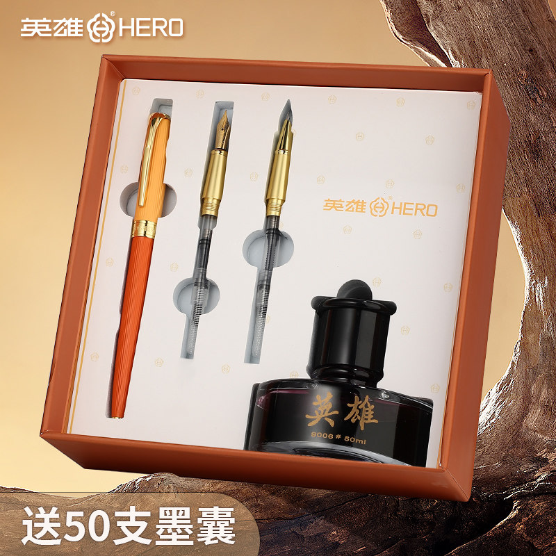 HERO英雄钢笔官方正品商务送礼办公高档礼盒套装男士成人美工书法学生练字专用签字笔礼物定制logo刻字旗舰店