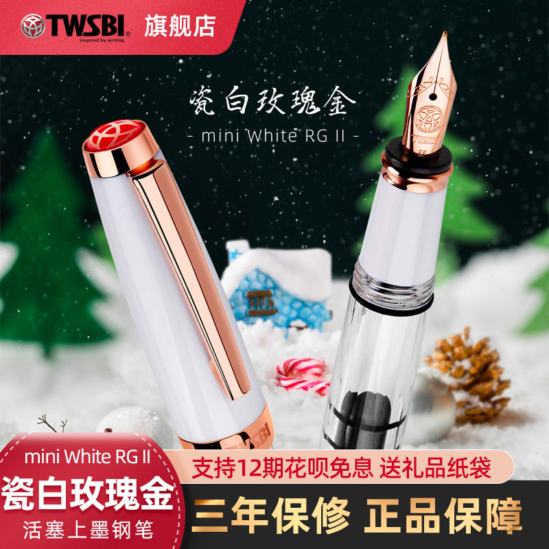 twsbi三文堂瓷白玫瑰金钢笔女生专用复古练字笔学生透明硬笔书法笔男士商务送礼高颜值墨水笔礼盒