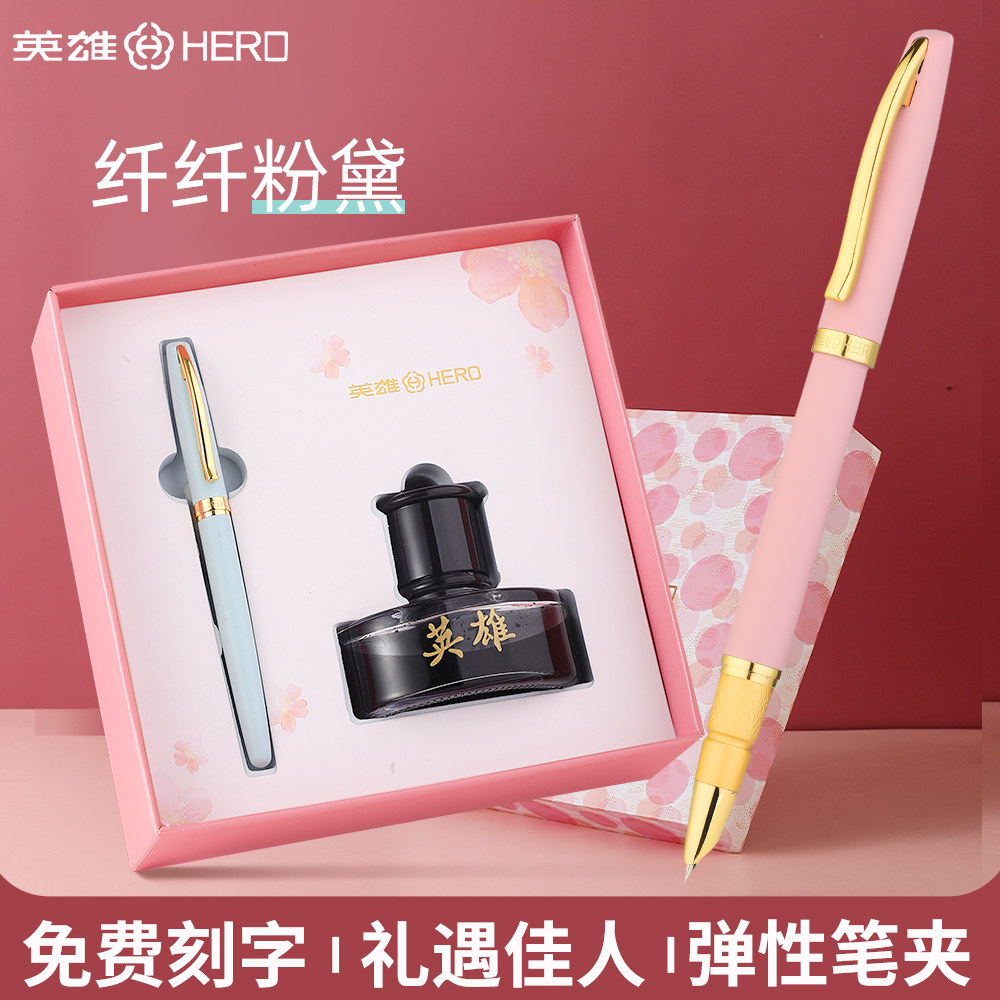 英雄牌钢笔礼盒套装女生学生专用女士高档精致礼物高颜值文艺青年练字男士墨水生日礼品送老师送人定制刻字