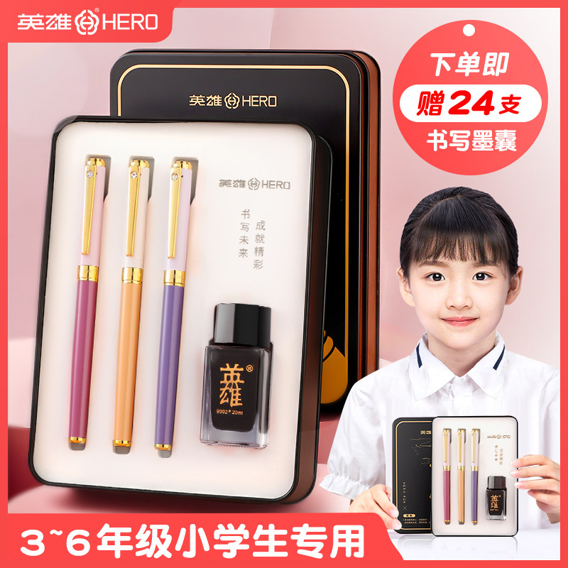 英雄牌钢笔学生专用女士高档礼盒可换墨囊小学生三年级女生款女孩官方旗舰店正品四年级五六年级用儿童刻字