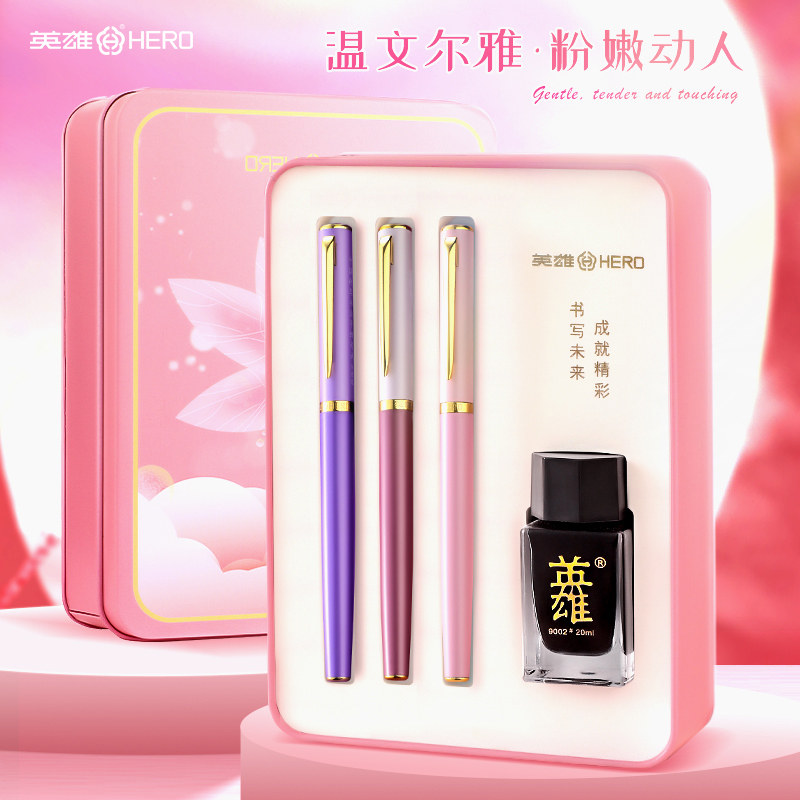 英雄牌钢笔三支装礼盒套装礼物送礼女生款可爱学生专用练字女孩小学生用三四五年级官方正品旗舰店初中生女儿