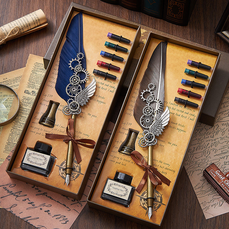 经典复古羽毛钢笔哈利波特羽毛笔礼盒蘸水笔礼品男生女生生日礼物送老师礼品鸭嘴头平头钢笔六一儿童节礼物