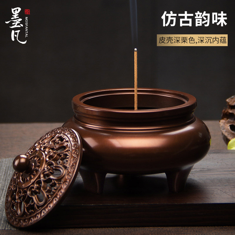 墨凡铜香炉家用室内盘香炉香薰炉茶道仿古大号檀香炉香道家居摆件