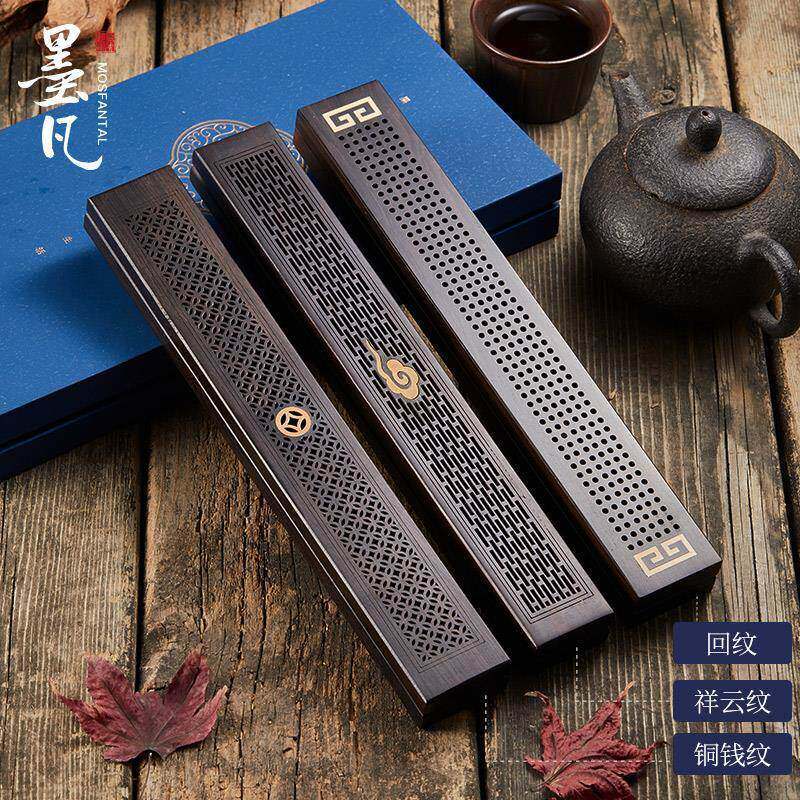 墨凡黑檀木卧香盒家用室内檀香炉木质茶道线香盒焚香插沉香线香炉