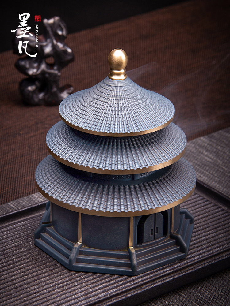 墨凡黄铜盘香炉檀香家用室内熏香茶道办公摆件大号创意天坛香薰炉