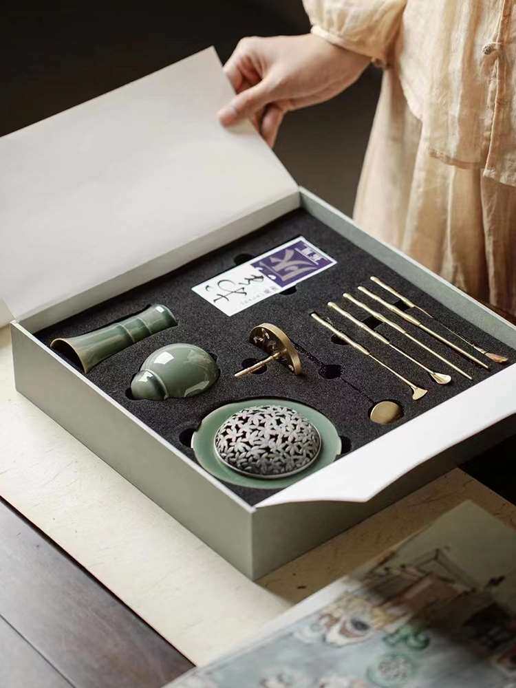 香熏沉香伴手礼盒墨凡铜制香道套装香篆打篆工具室内沉香檀香粉香