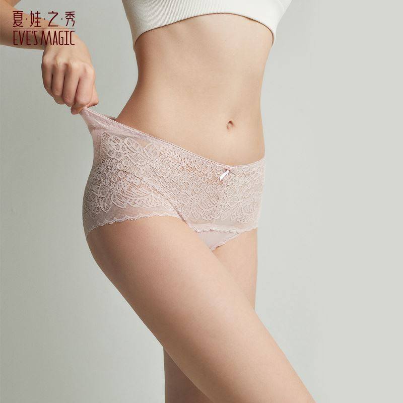 夏娃之秀蕾丝性感薄款内裤女中腰收腹提臀舒适女三角薄款速干底裤