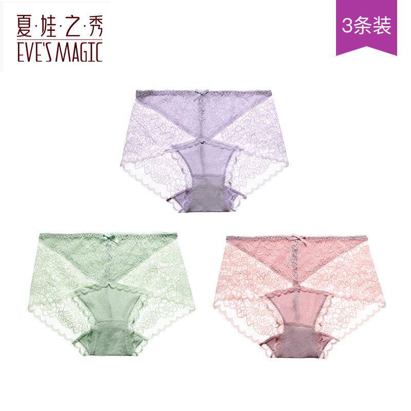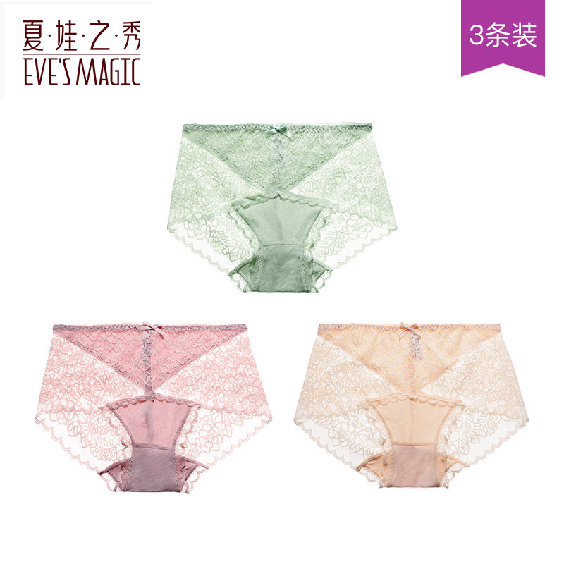 3条装夏娃之秀内裤女性感舒适亲肤蕾丝三角裤纯色透气提臀短裤