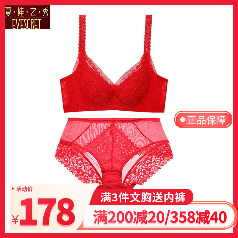 夏娃之秀性感法式蕾丝内衣女夏小胸聚拢调整型红色结婚新娘文胸罩