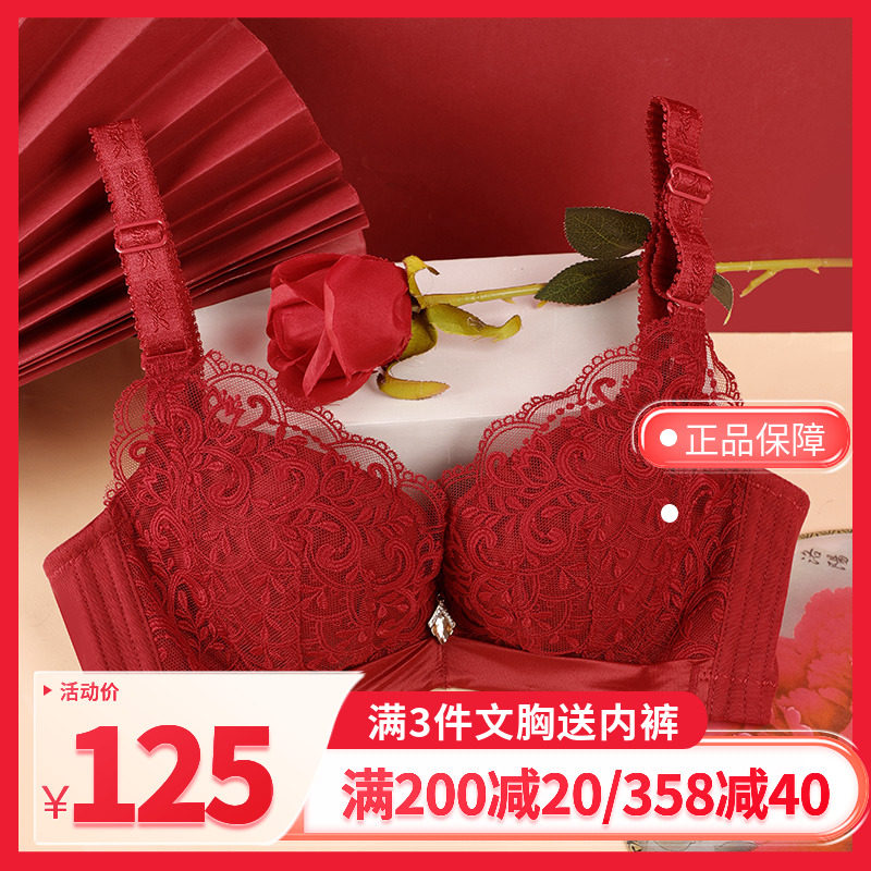夏娃之秀调整型红色结婚内衣女文胸加厚聚拢小胸性感侧收副乳胸罩