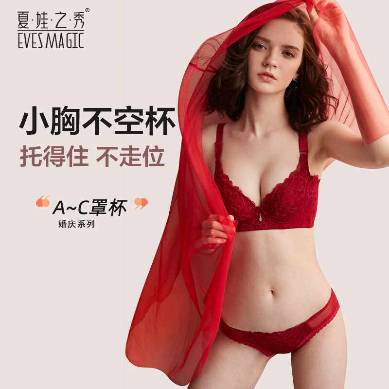 夏娃之秀性感法式蕾丝内衣女夏小胸聚拢调整型红色结婚新娘文胸罩