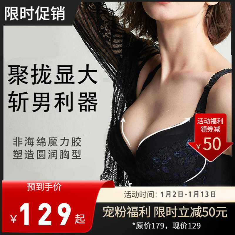 夏娃之秀性感小胸聚拢加厚显大内衣女防下垂调整型蕾丝文胸秋冬季