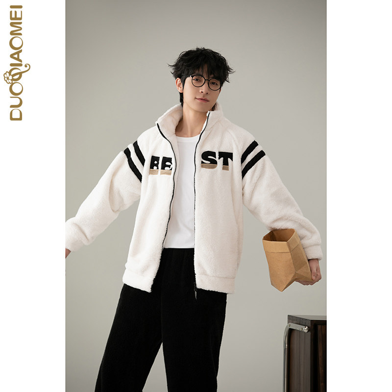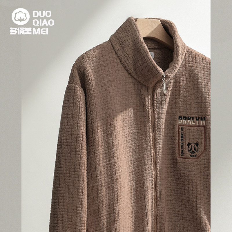 珊瑚绒男士睡衣秋冬季加绒加厚运动拉链男生冬天冬款法兰绒家居服