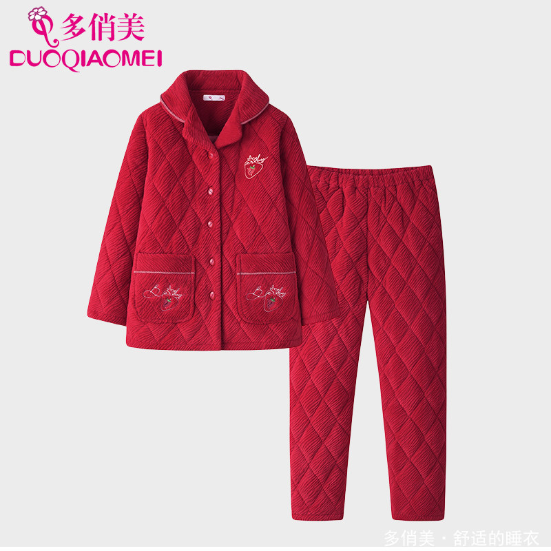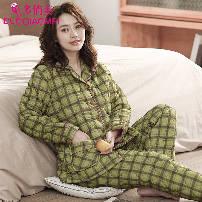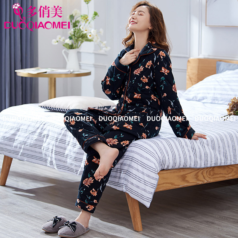 多俏美新款睡衣女士秋冬季加厚纯棉长袖家居服夹棉袄保暖冬天冬款