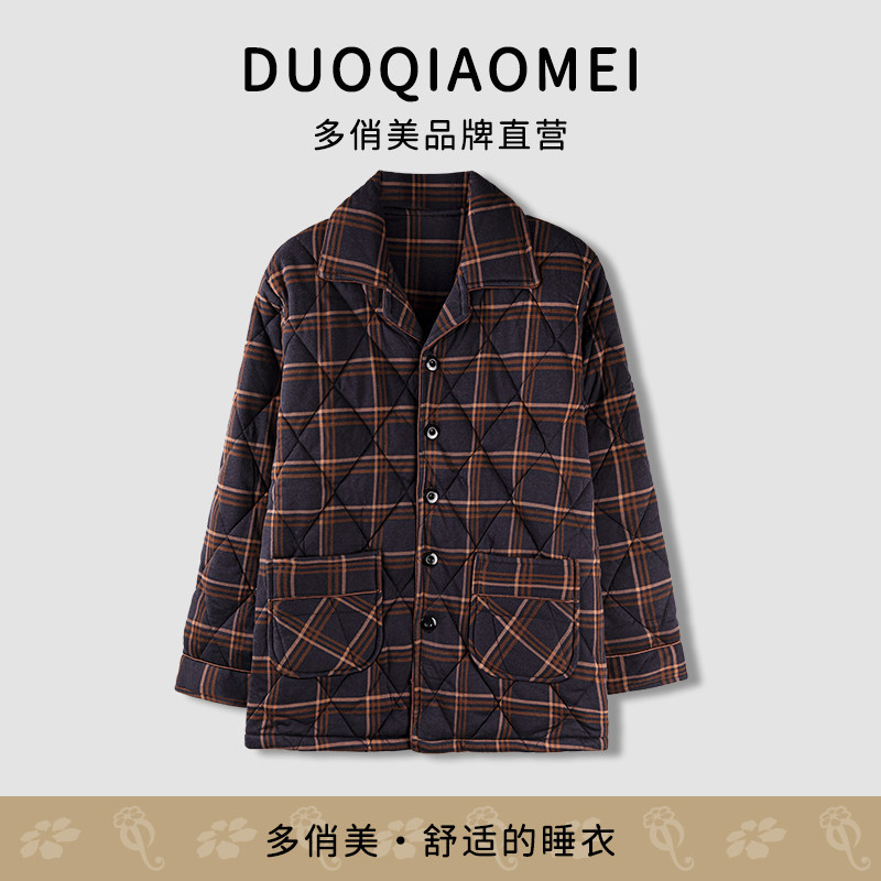 单件女士睡衣秋冬款保暖上衣妈妈三层夹棉袄冬季外套可外穿家居服