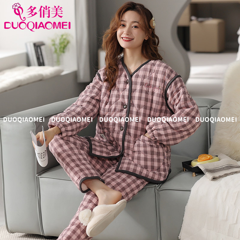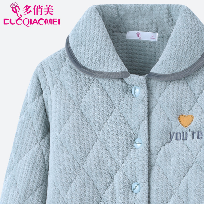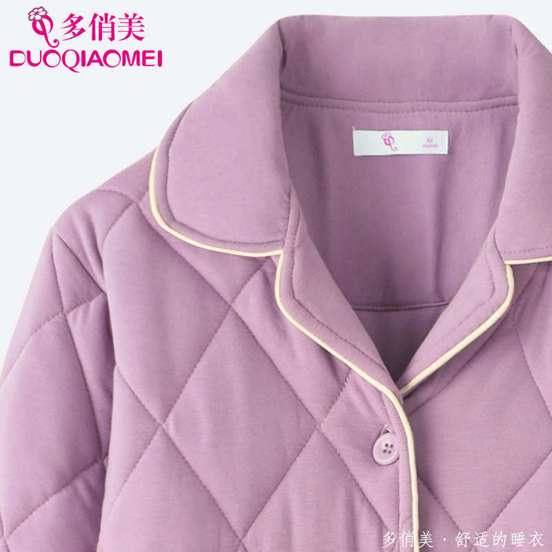 多俏美睡衣女士秋冬季加厚纯棉长袖家居服夹棉袄保暖冬天冬款