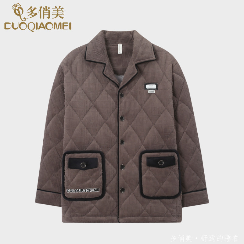 睡衣男款冬季男士家居服上衣单件珊瑚绒夹棉袄大码外套可外穿保暖