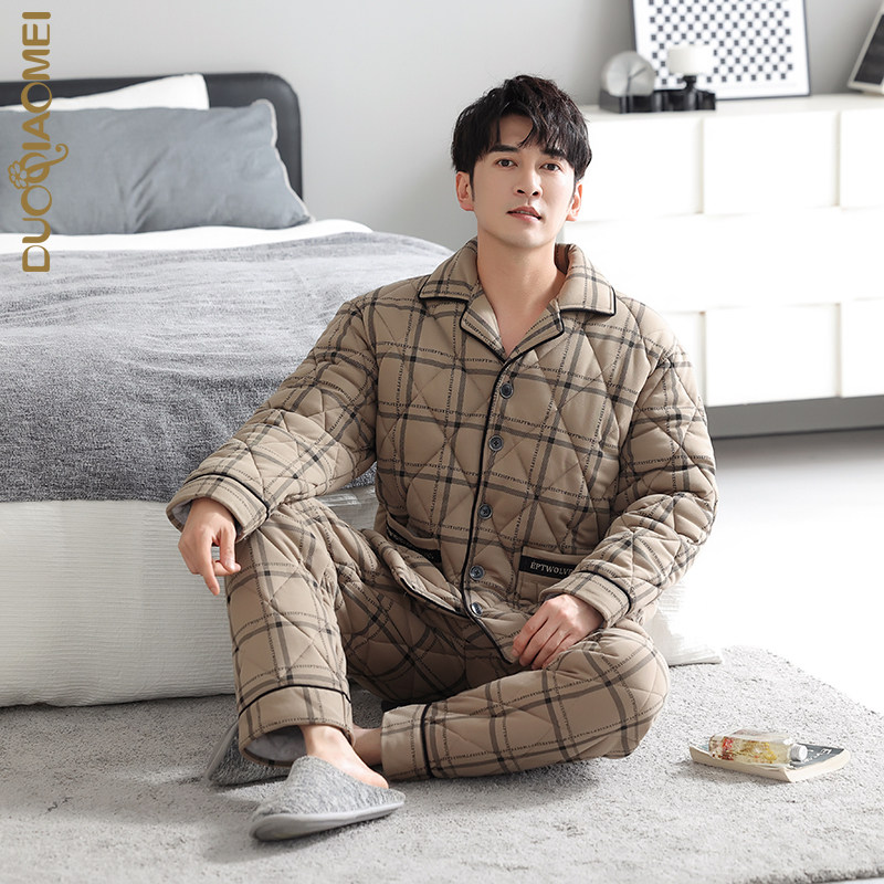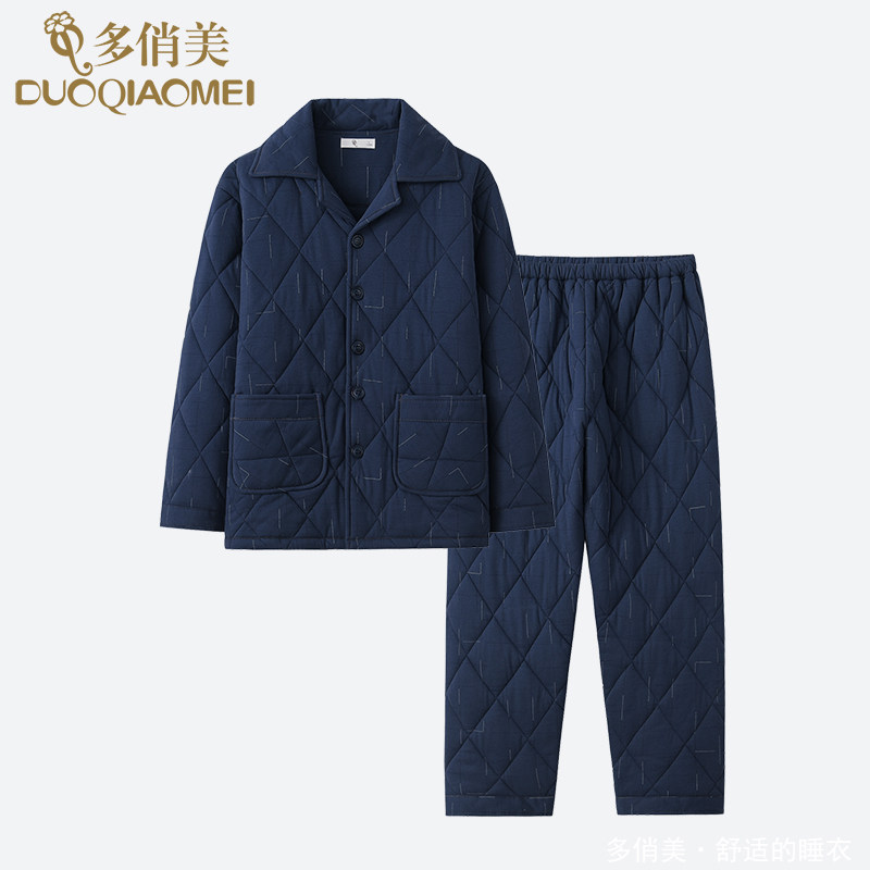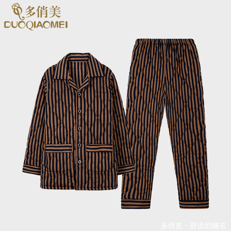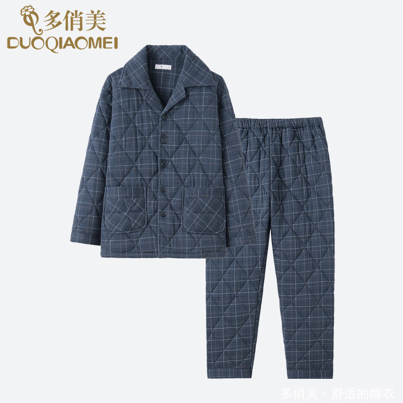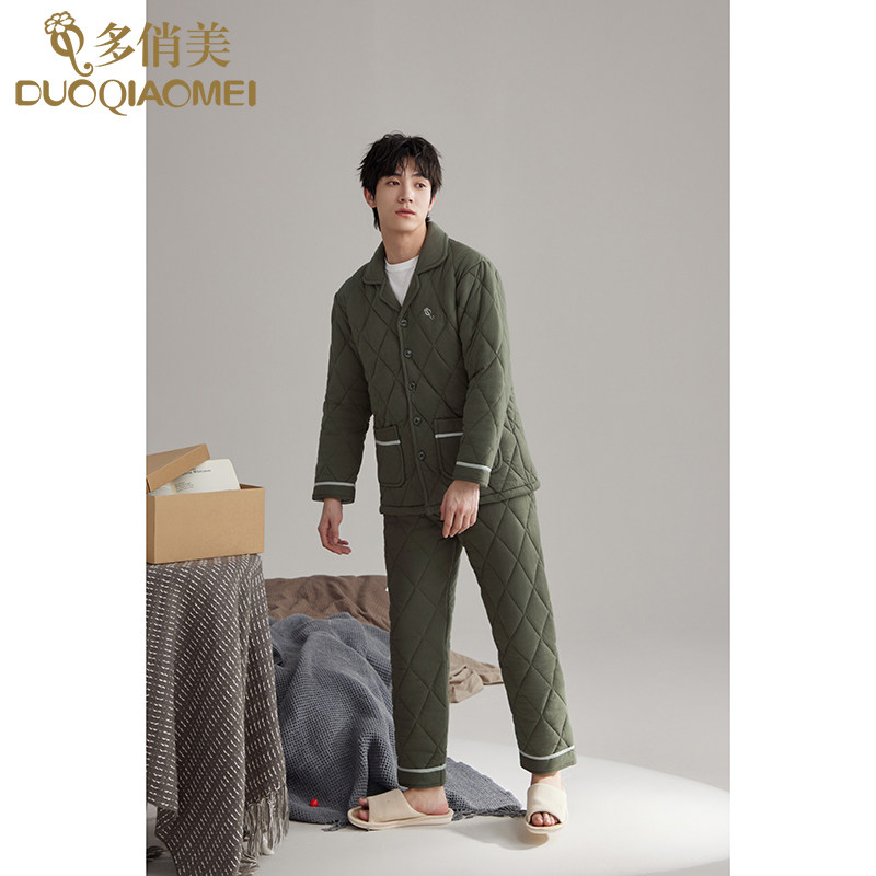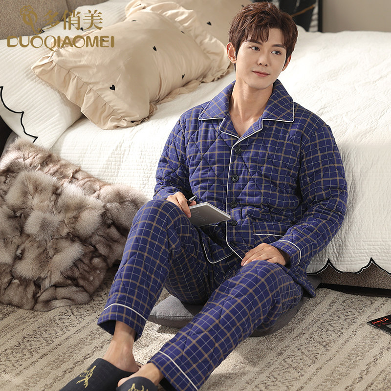 新款纯棉三层加厚夹棉冬季男士睡衣棉袄秋冬款男式大码居家服套装