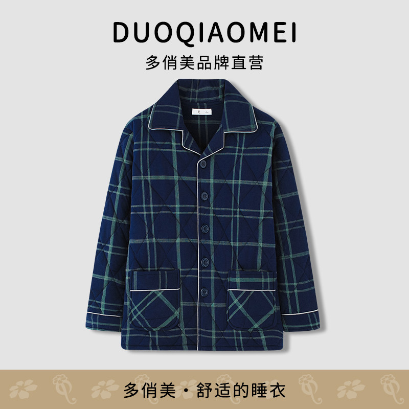 冬季男士夹棉睡衣上衣三层加厚纯棉保暖全棉单件棉袄外套大码宽松