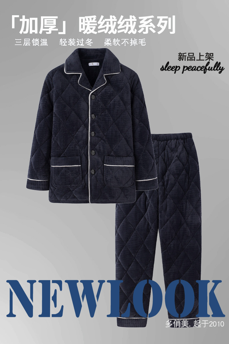 睡衣男士冬天三层加厚保暖男装夹棉加绒珊瑚绒棉衣男款家居服套装