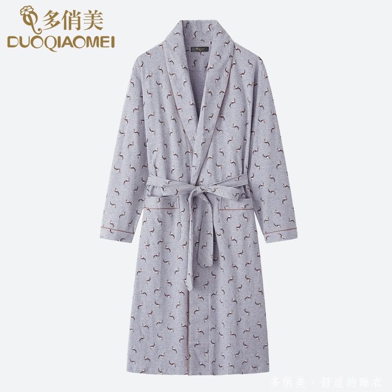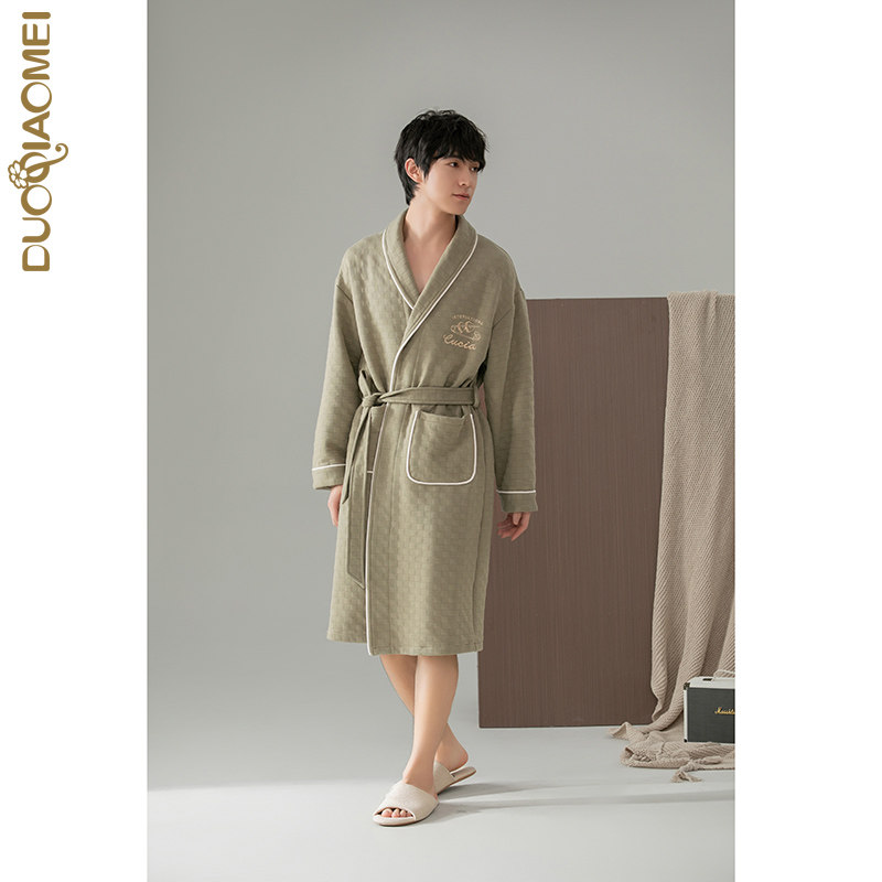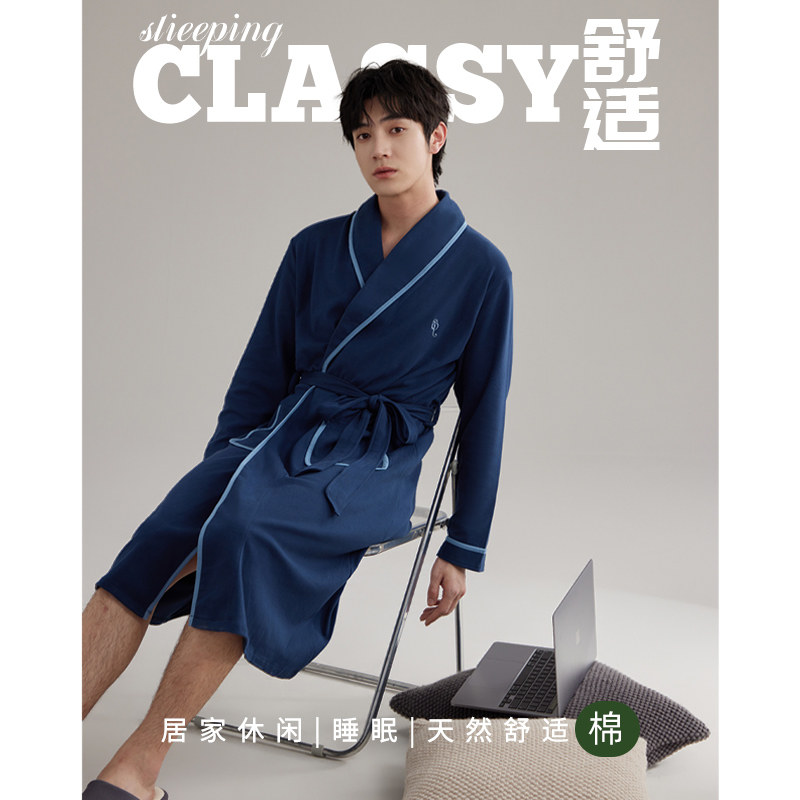 睡袍男士睡衣男款浴袍春秋款秋季纯棉长袖家居服长款薄款大码度假