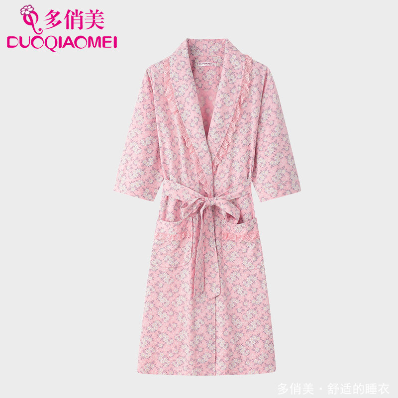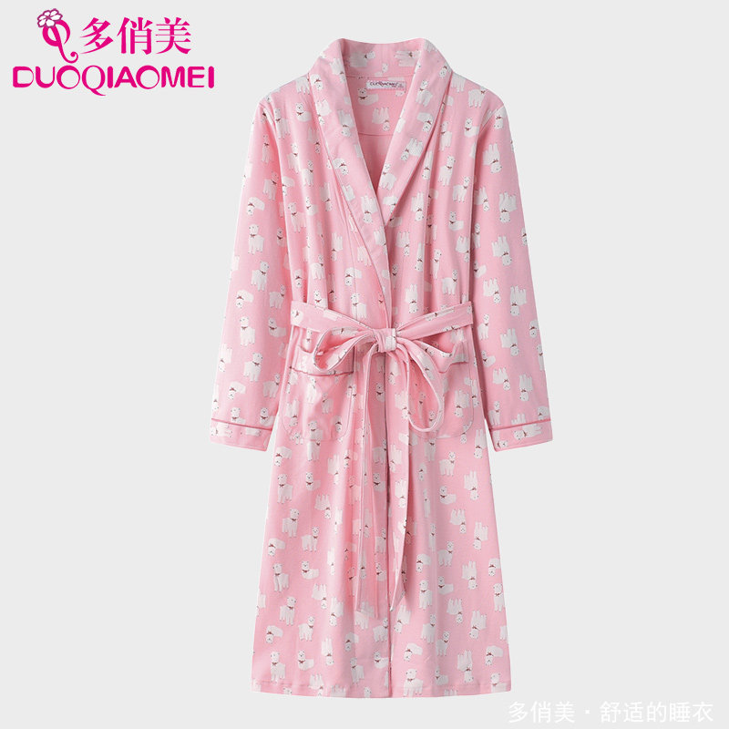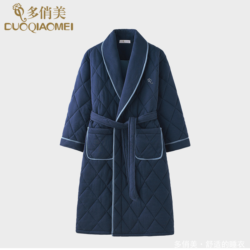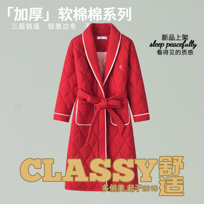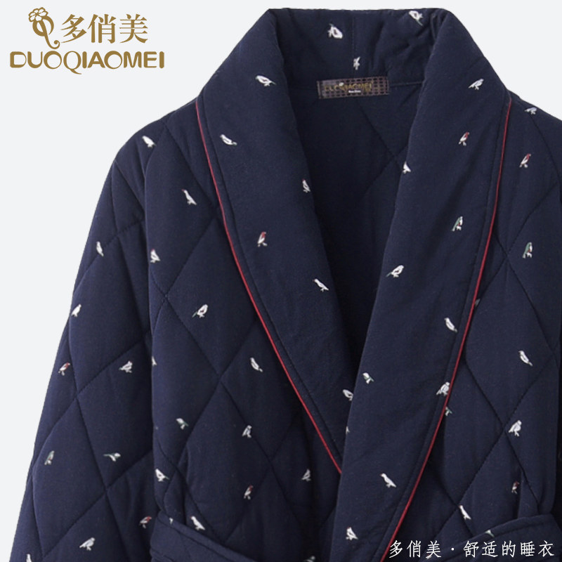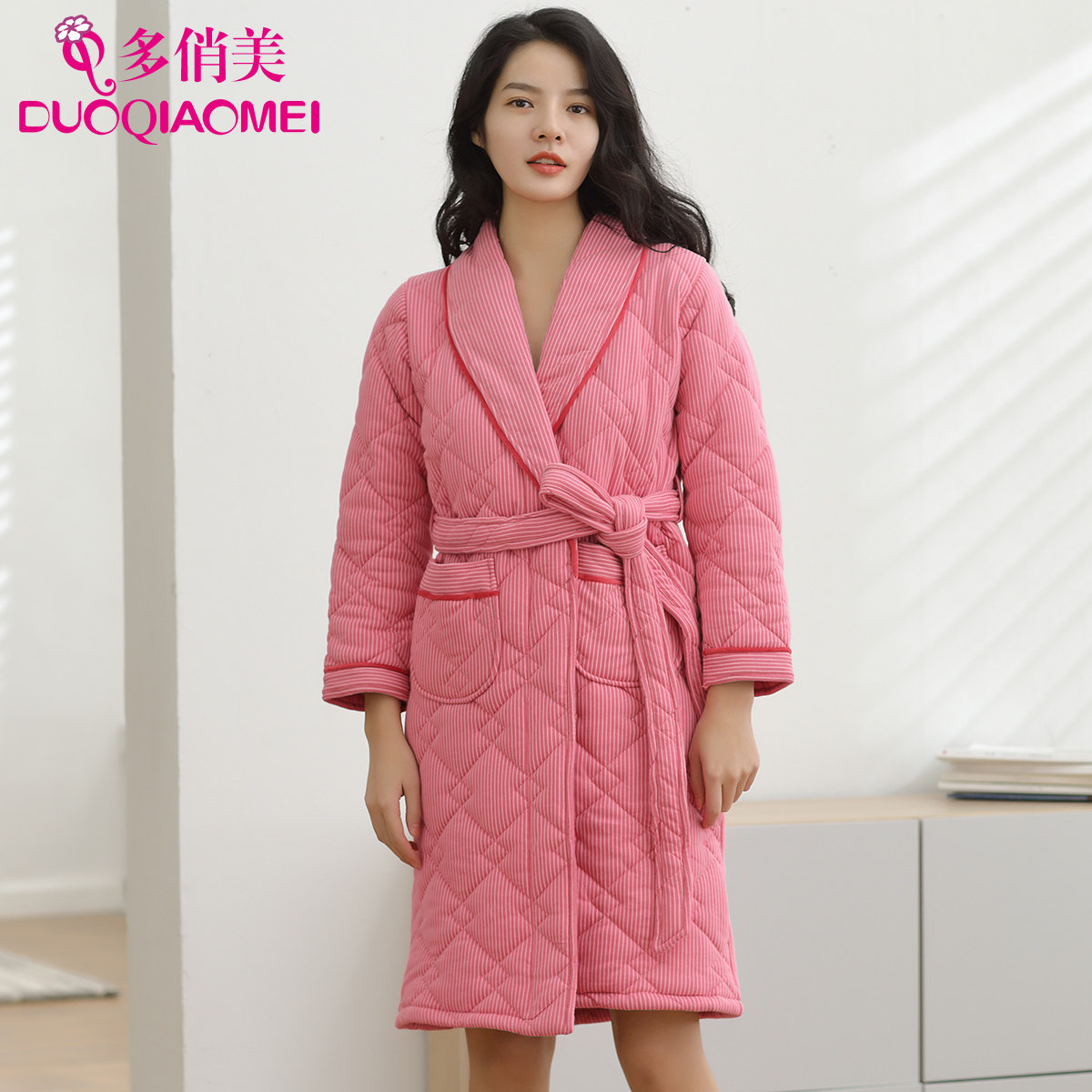 多俏美纯棉夹棉女士睡衣秋冬款冬天冬季全棉加厚睡袍浴袍浴衣女款