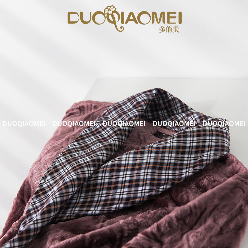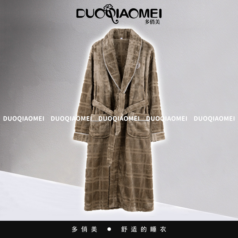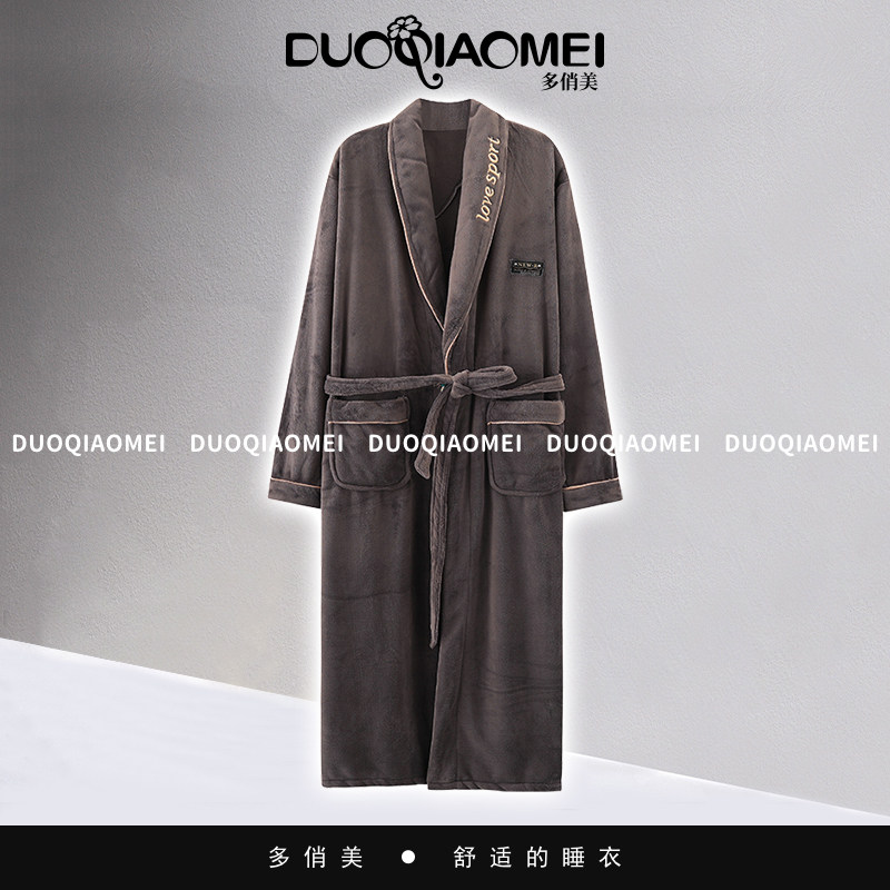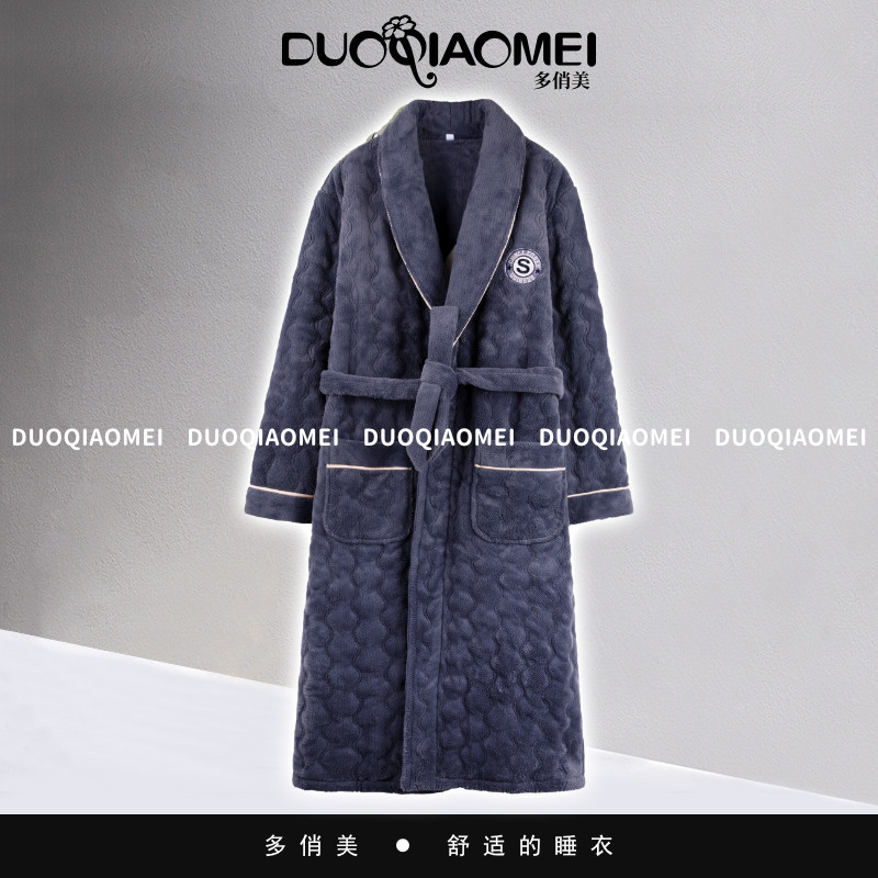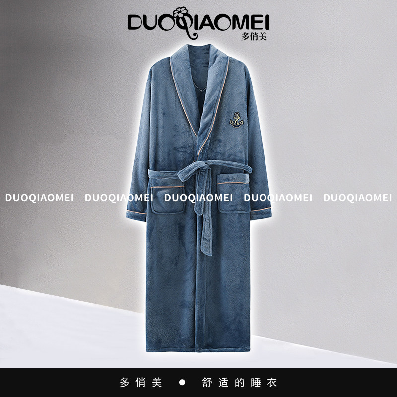 多俏美睡衣男士睡袍男款秋冬款冬季珊瑚绒加厚加绒法兰绒浴袍长款