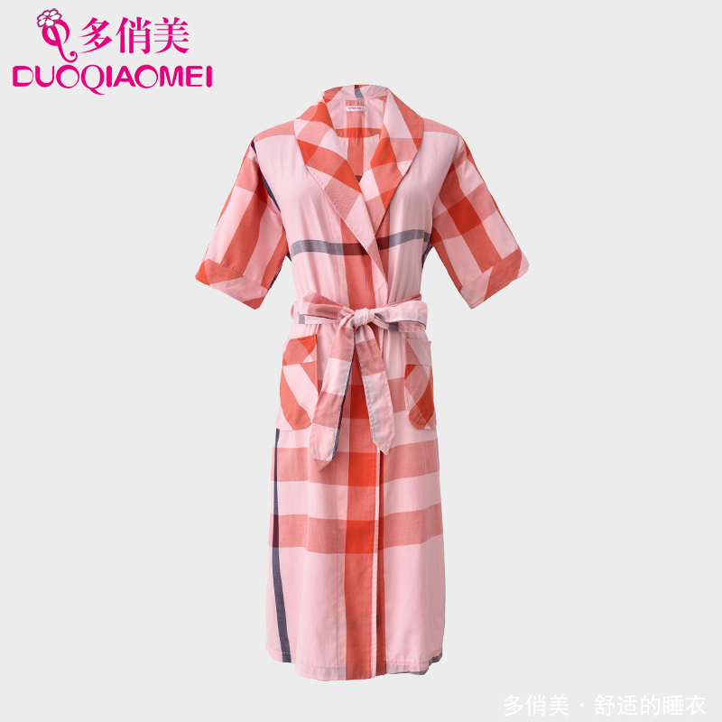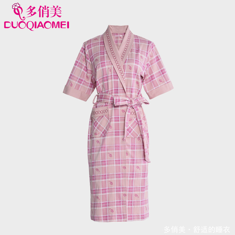 短袖睡袍女春夏季格子纯棉日式系带全棉浴袍浴衣睡衣夏天夏款女装