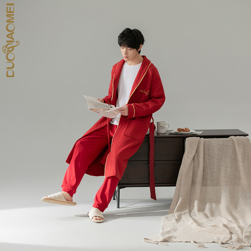 2024年新款男士睡衣秋冬款晨袍纯棉夹棉浴袍加厚保暖中长款睡袍男