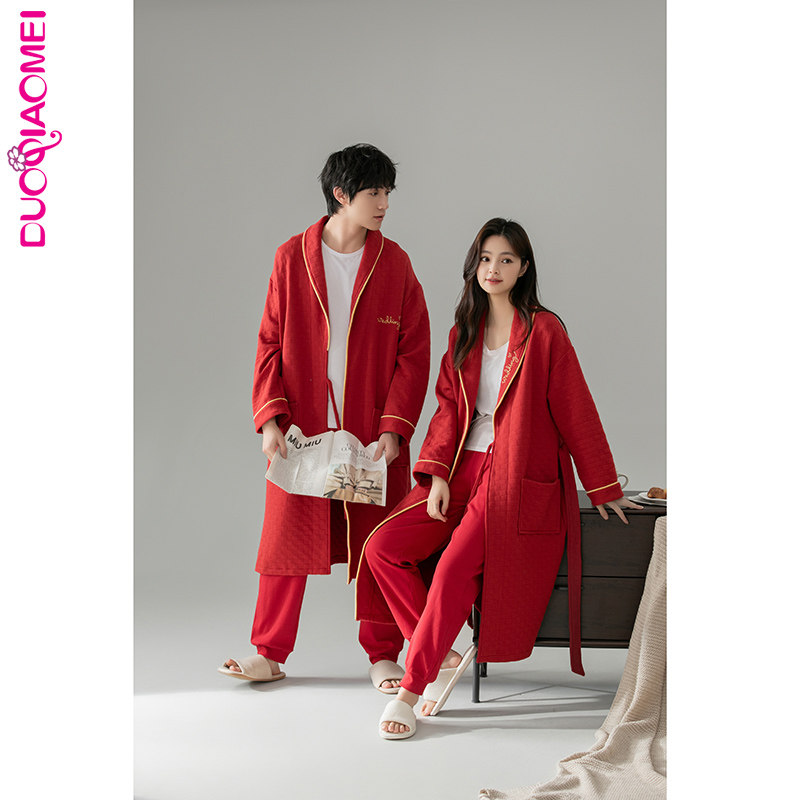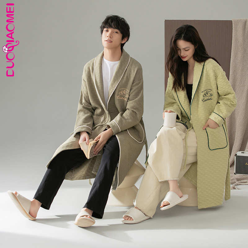 秋冬季情侣睡袍冬款女睡衣男士长袍晨袍浴袍式加厚纯棉空气棉夹棉