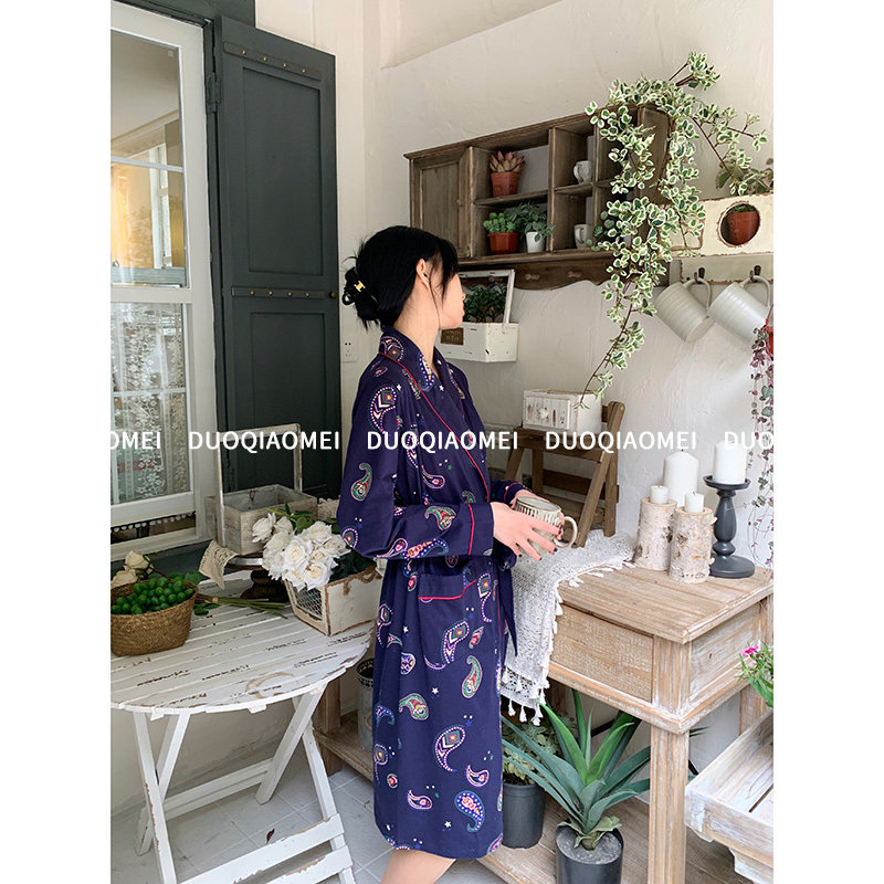 睡袍女士睡衣春秋季浴袍睡裙长款薄款纯棉长袖全棉浴衣家居服日式