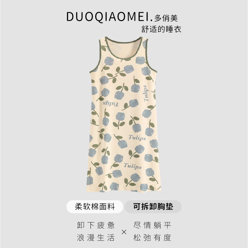 睡裙夏季女款自带胸垫片纯棉吊带背心女士防凸点贴可人睡衣女夏天