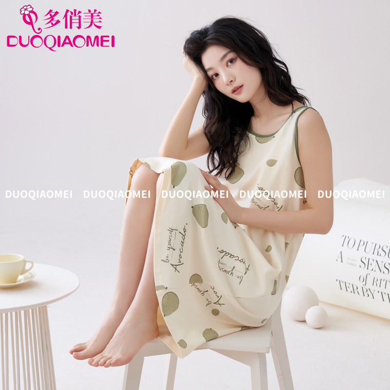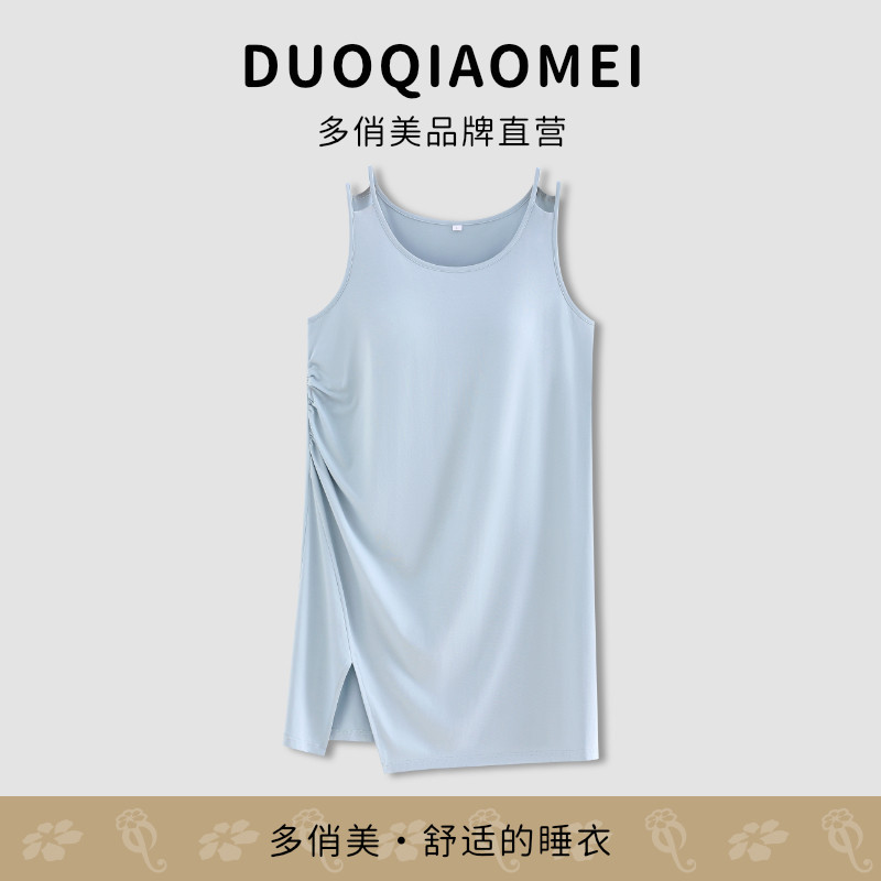 莫代尔无袖睡裙女夏季薄款带胸垫一体连衣裙宽松睡衣裙背心家居服