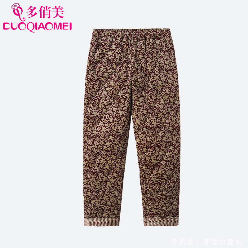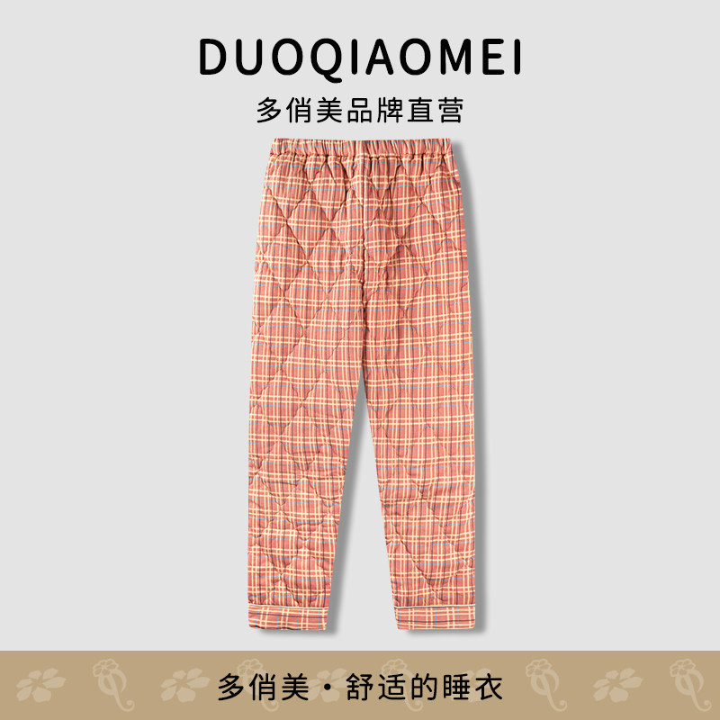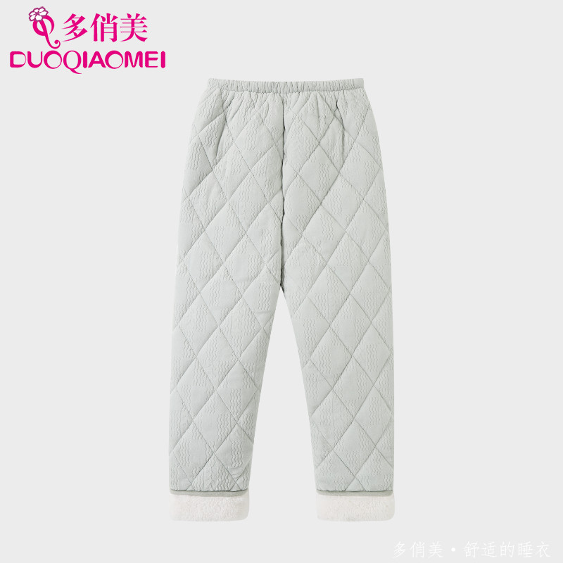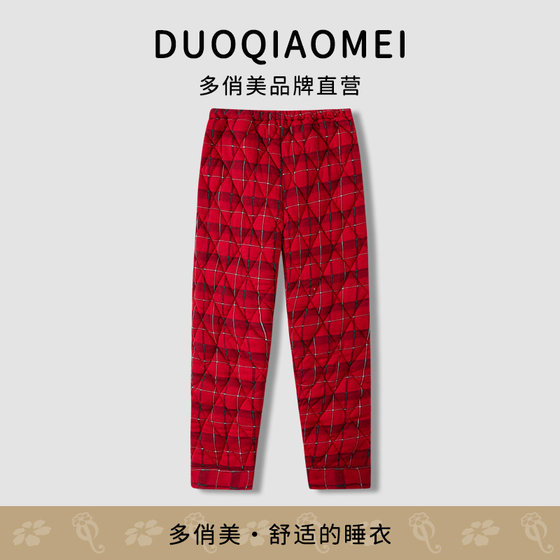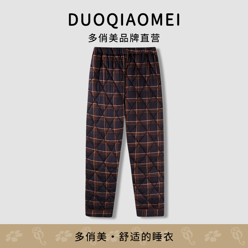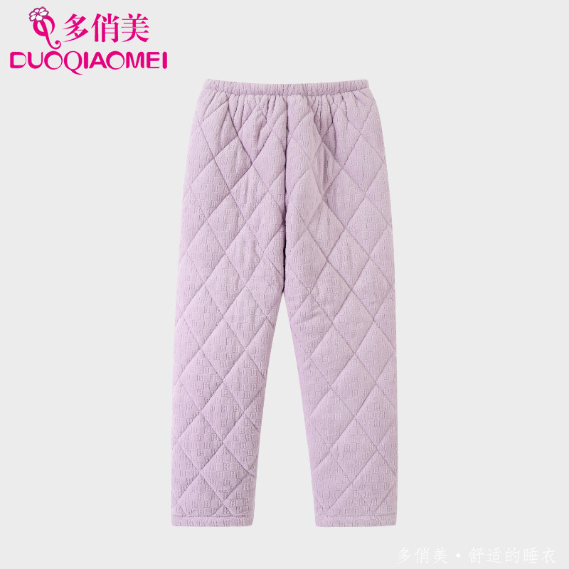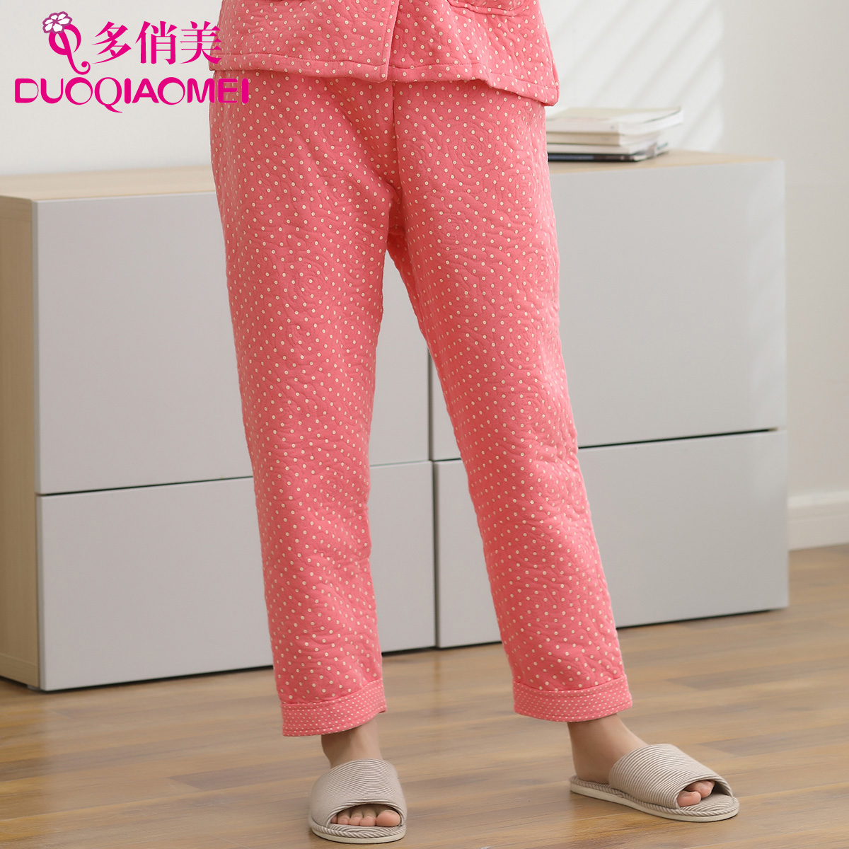 多俏美单条睡裤女长裤纯棉夹棉秋冬季家居裤子外穿全棉夹层加厚女
