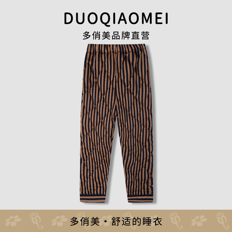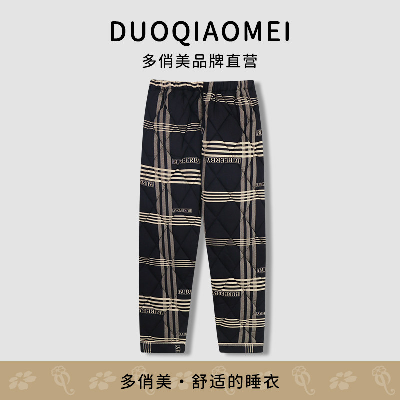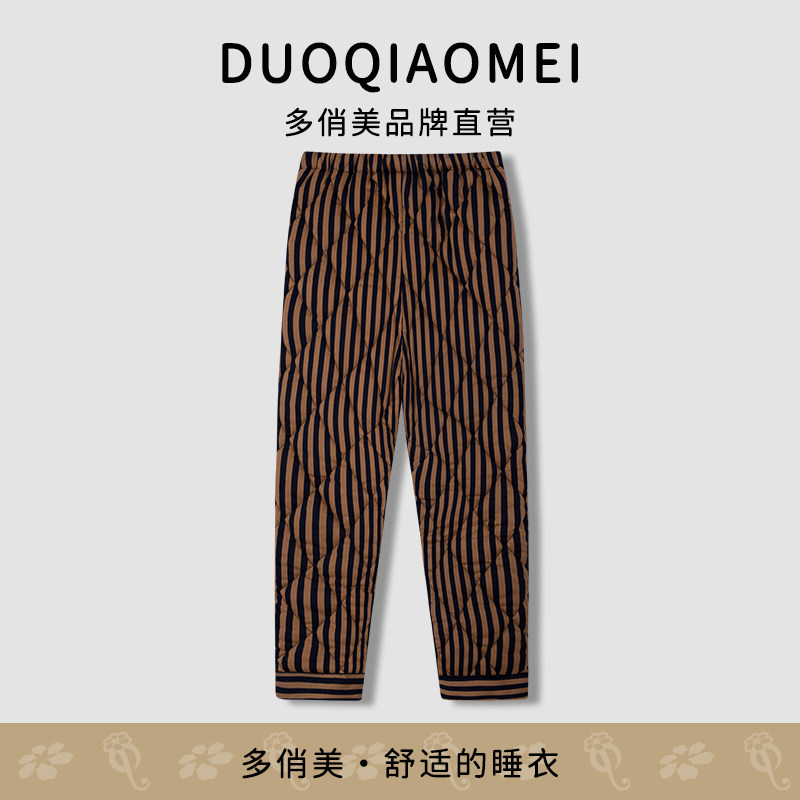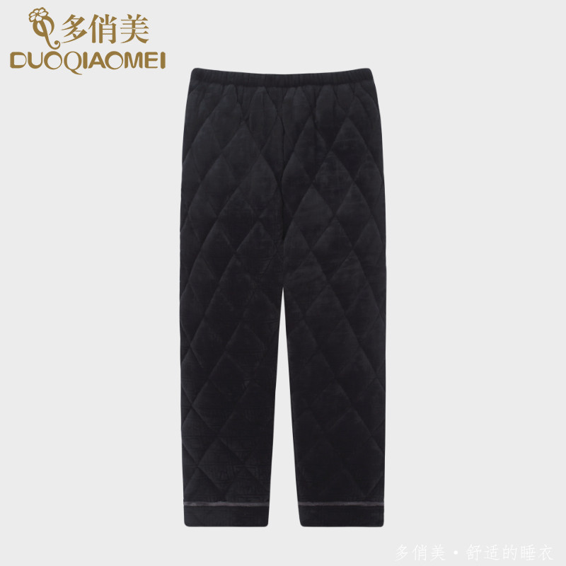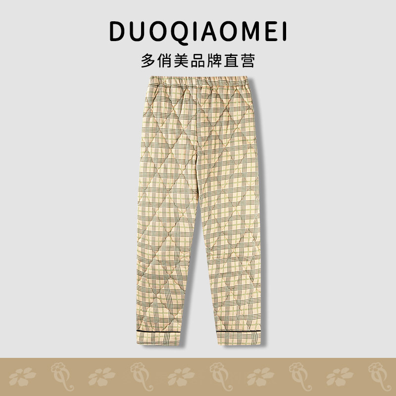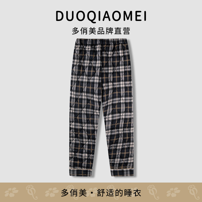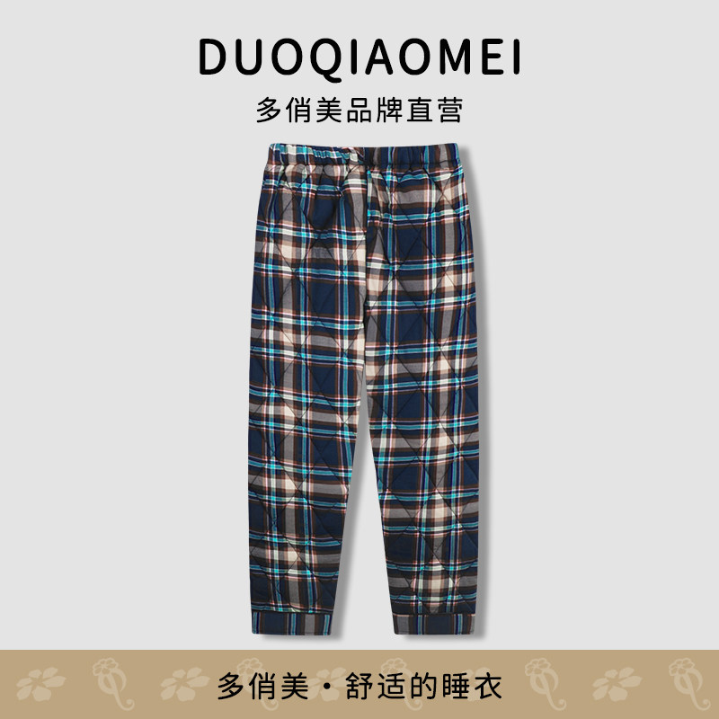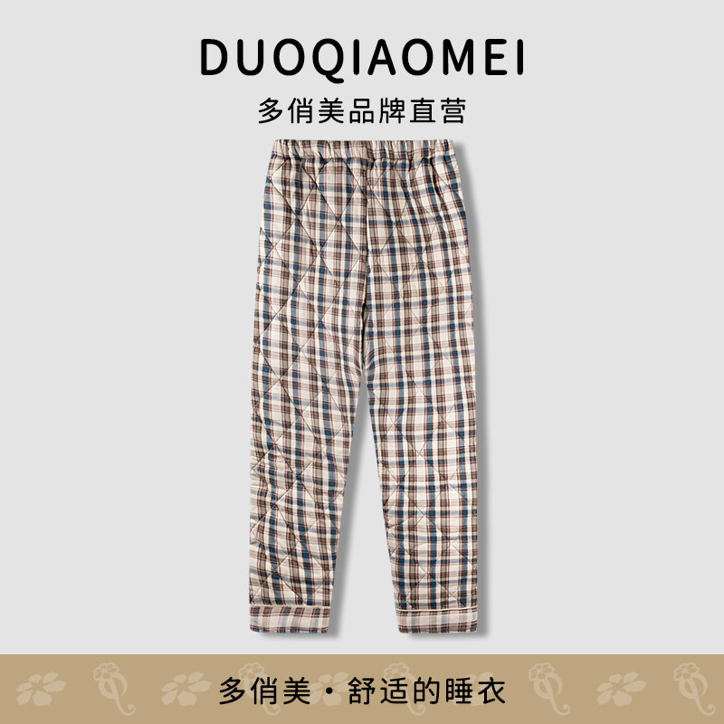 多俏美单条睡裤女长裤纯棉夹棉秋冬季家居裤子外穿全棉夹层加厚女