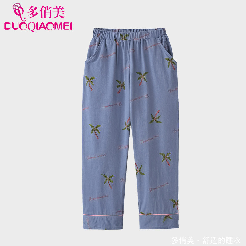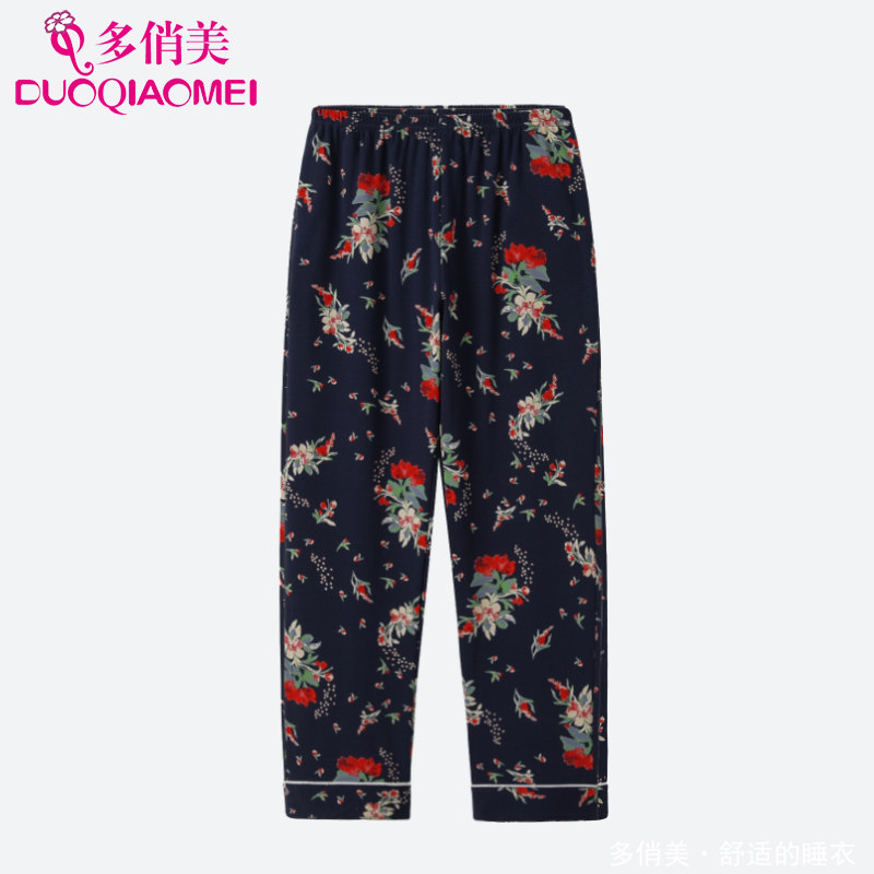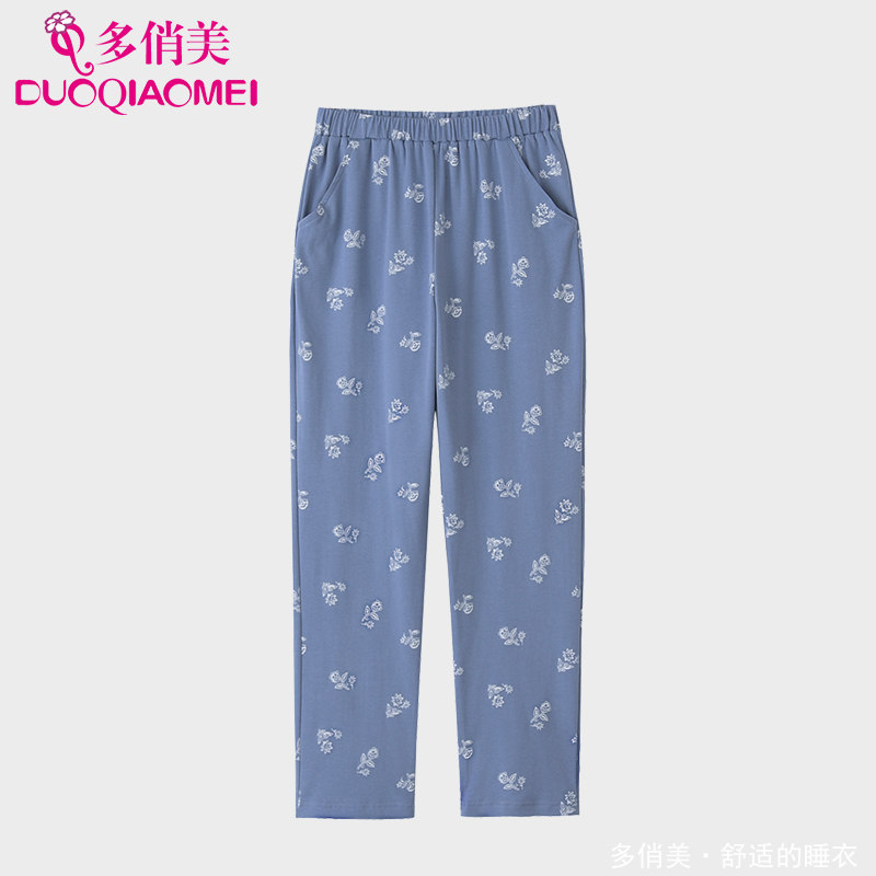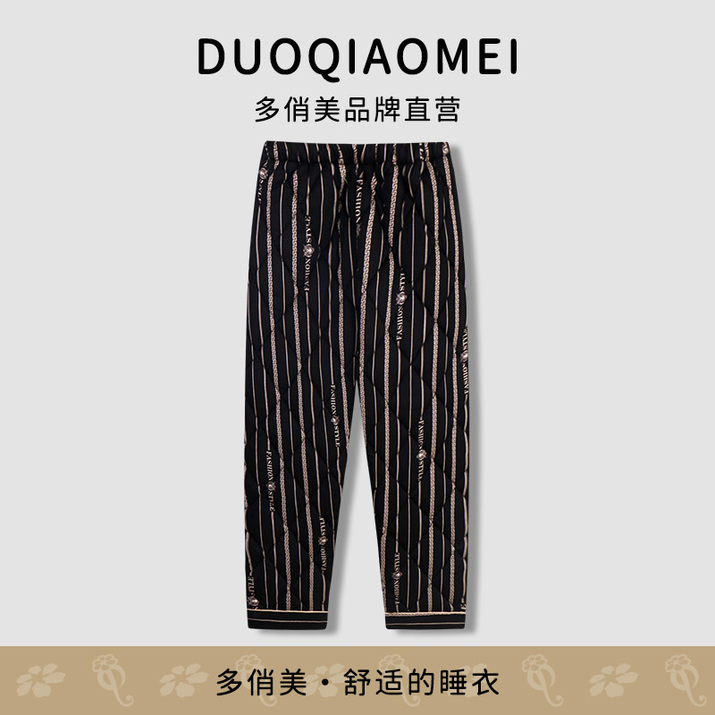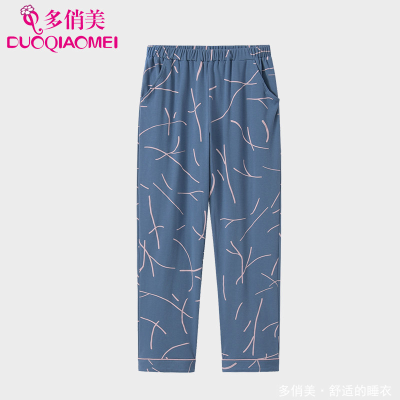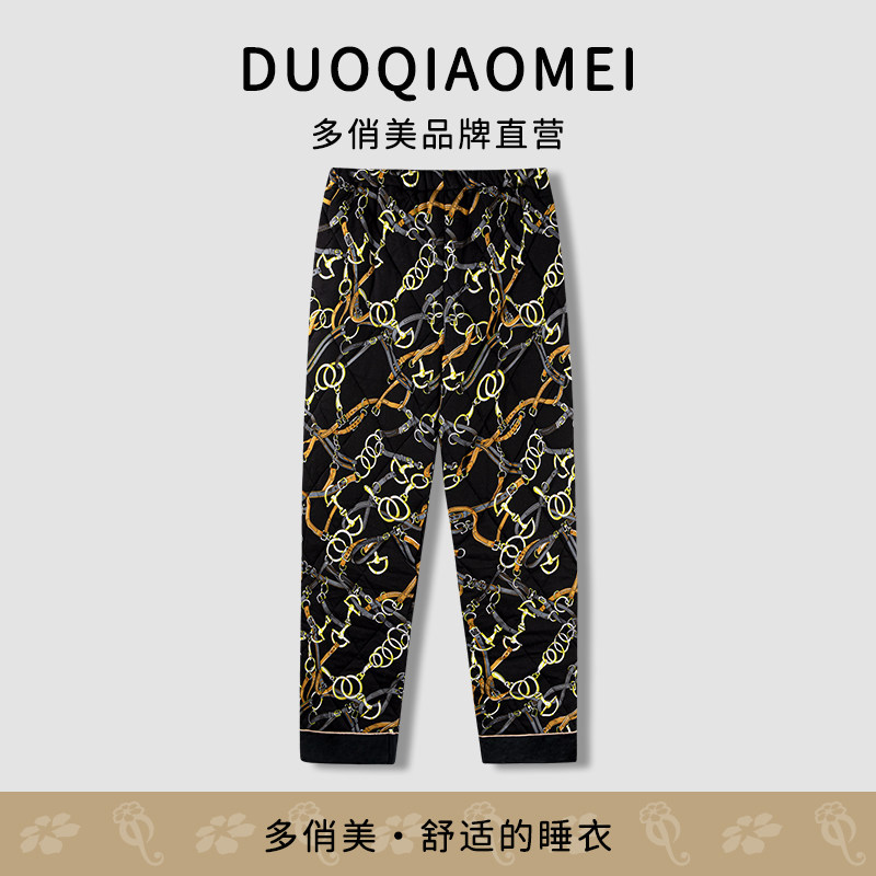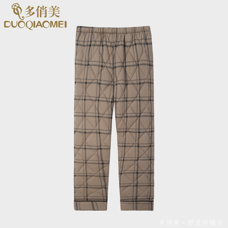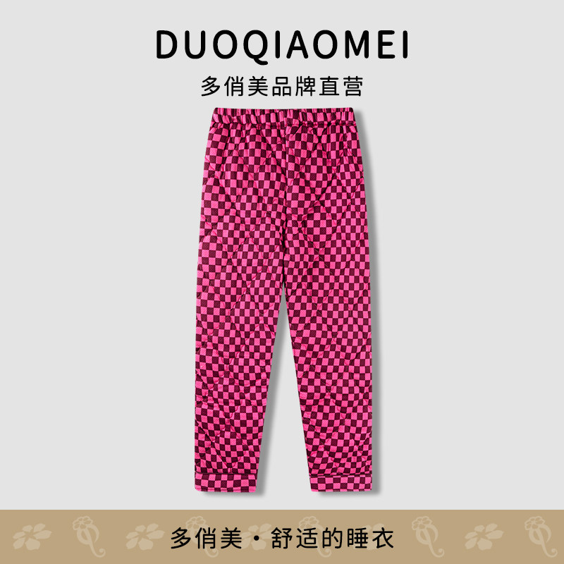 多俏美单条睡裤女长裤纯棉夹棉秋冬季家居裤子外穿全棉夹层加厚女