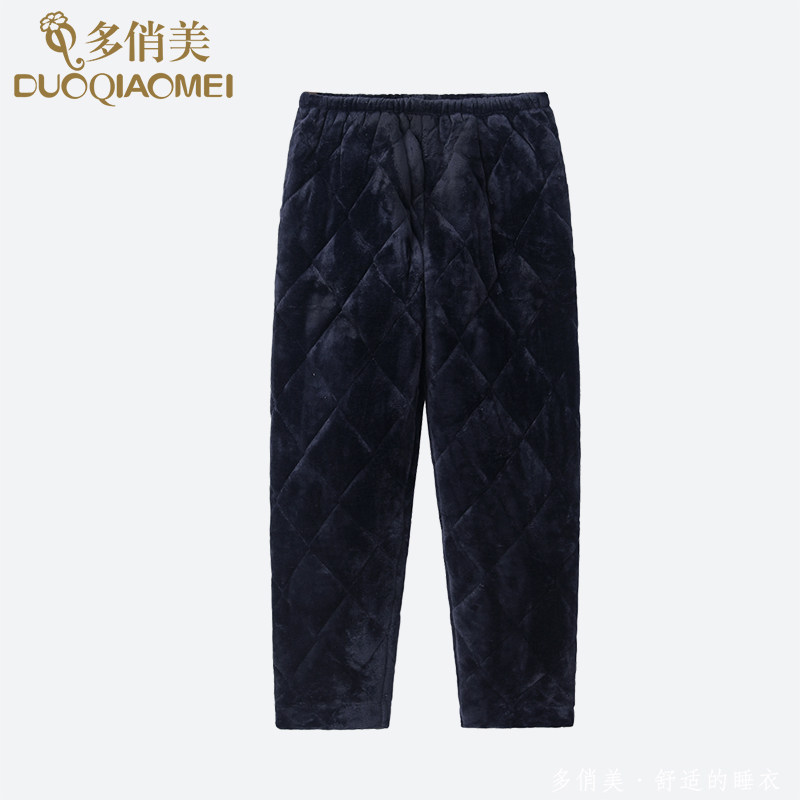 冬季男士加绒加厚三层夹棉珊瑚绒睡衣裤子法兰绒男睡裤长裤家居裤