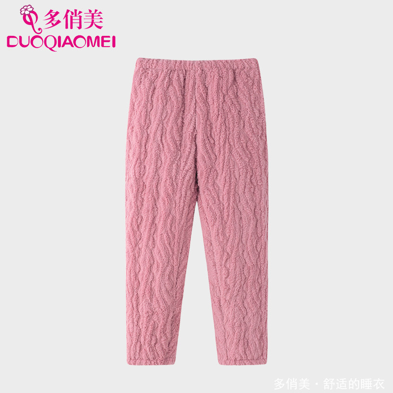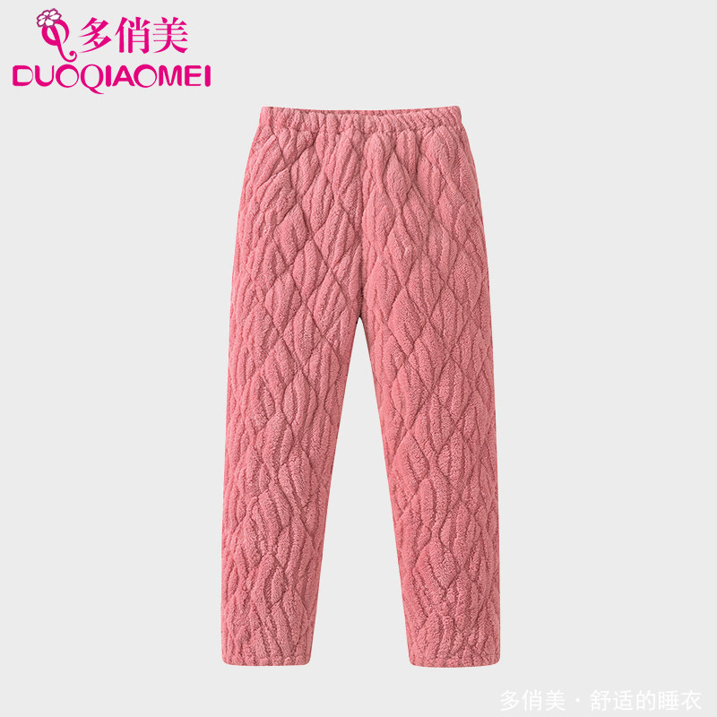 冬季女士加绒加厚三层夹棉珊瑚绒睡衣裤子法兰绒女睡裤长裤家居裤