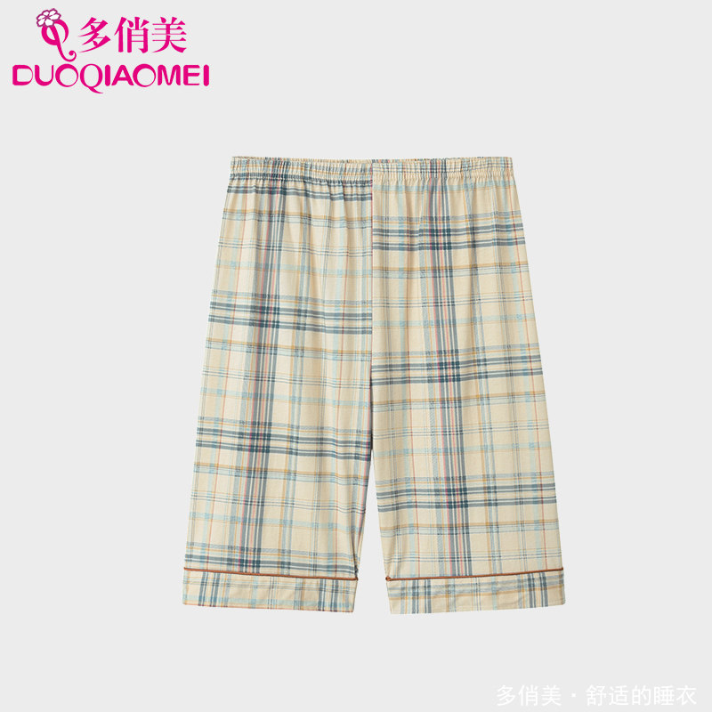 睡裤女短裤纯棉夏季薄款单件格子家居裤夏天大码居家宽松全棉裤子
