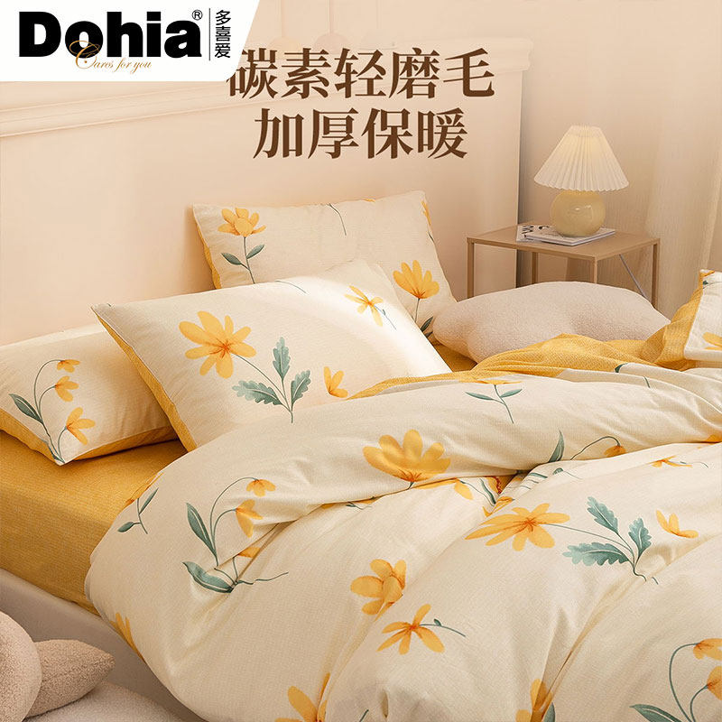 多喜爱全棉磨毛四件套床品三件套加厚床单被套秋冬床上用品