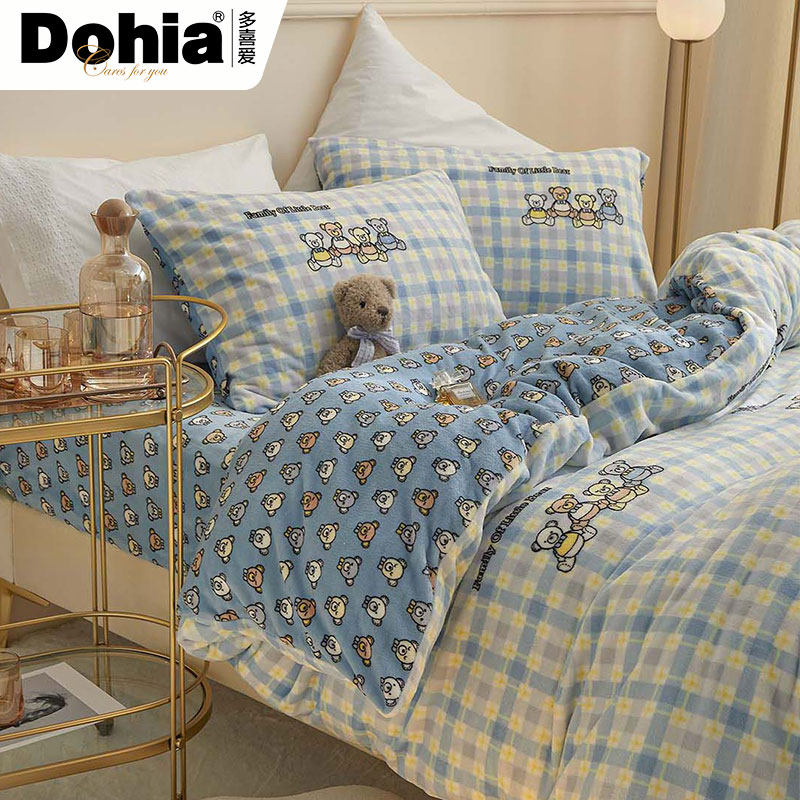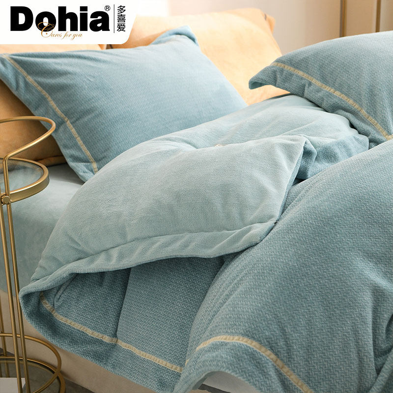 多喜爱牛奶绒四件套冬季保暖床上用品学生宿舍保暖绒三件套北欧风