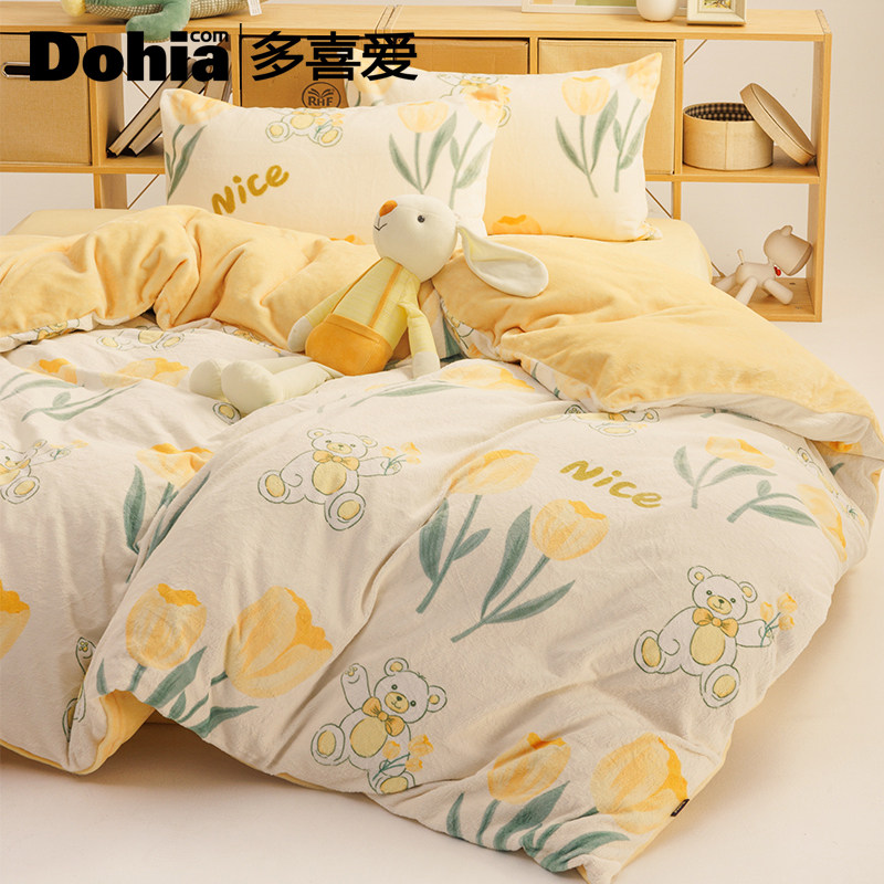 多喜爱秋冬暖暖绒四件套撸猫感加绒被套珊瑚绒加厚双面绒床上用品