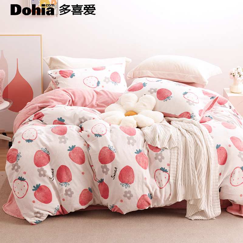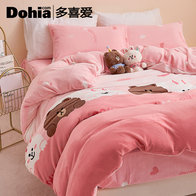 多喜爱牛奶绒四件套秋冬加厚保暖三件套床单被套床上用品暖绒套件