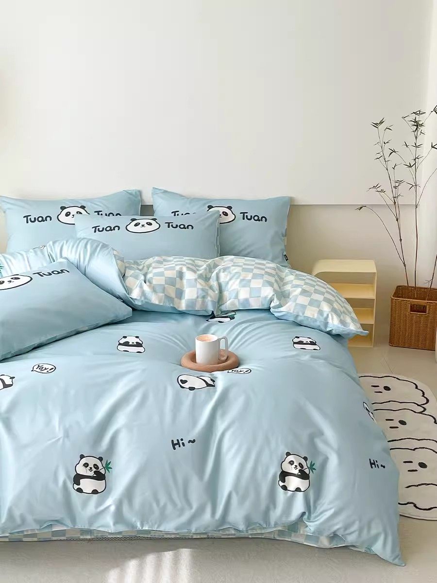 多喜爱四件套全棉卡通床上用品纯棉套件国风熊猫被套床单三件套
