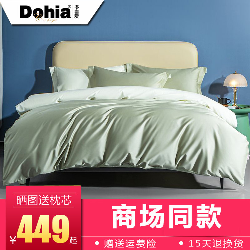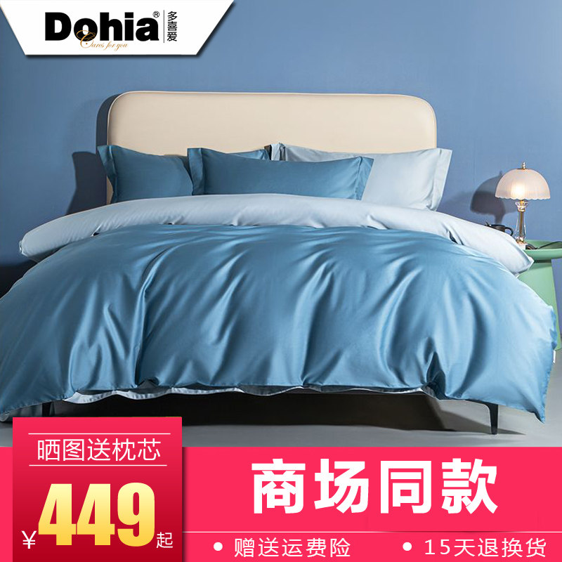 专柜正品多喜爱长绒棉四件套1.8m60支顺滑纯色简约床笠229*230cm