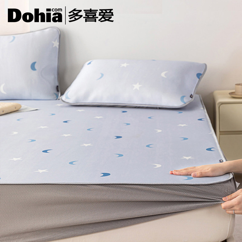 多喜爱可水洗软凉席A类简约夏天席子床笠款可机洗凉席三件套星辉